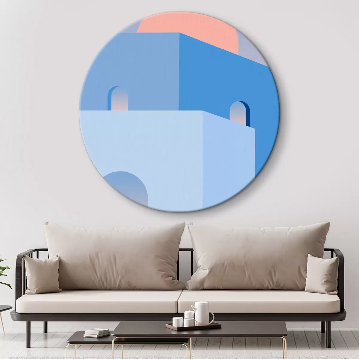 Runde Wandbilder Architektur im orientalischen Stil, abstrakte geometrische Kunst, blau, rosa r37132