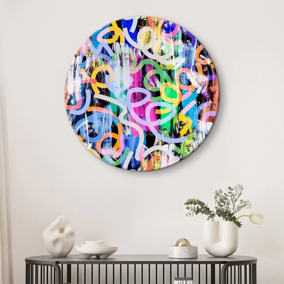 Runde Wandbilder Buntes Muster mit weißen und blauen Kreisen r37145