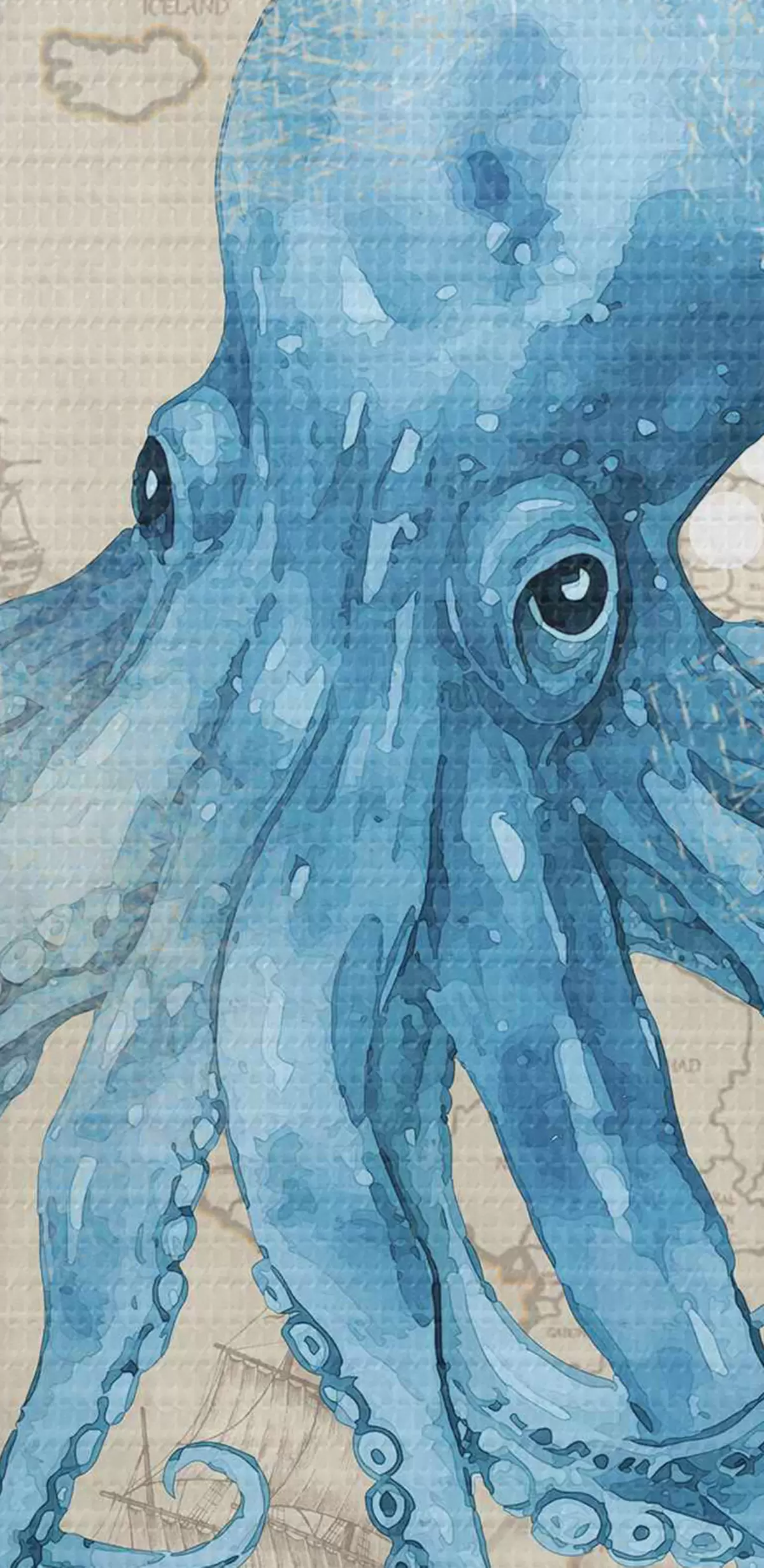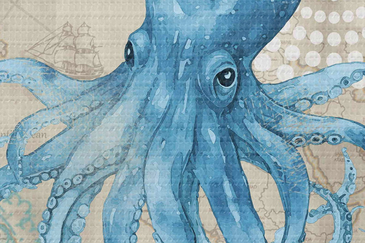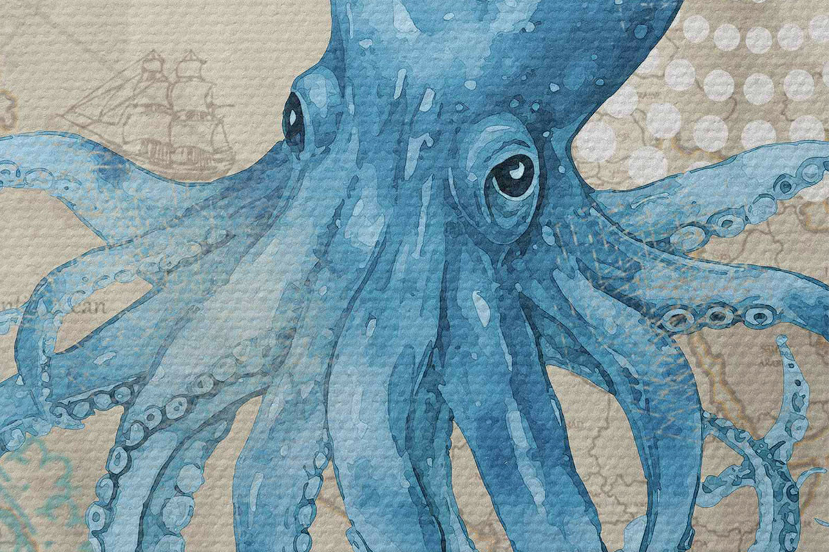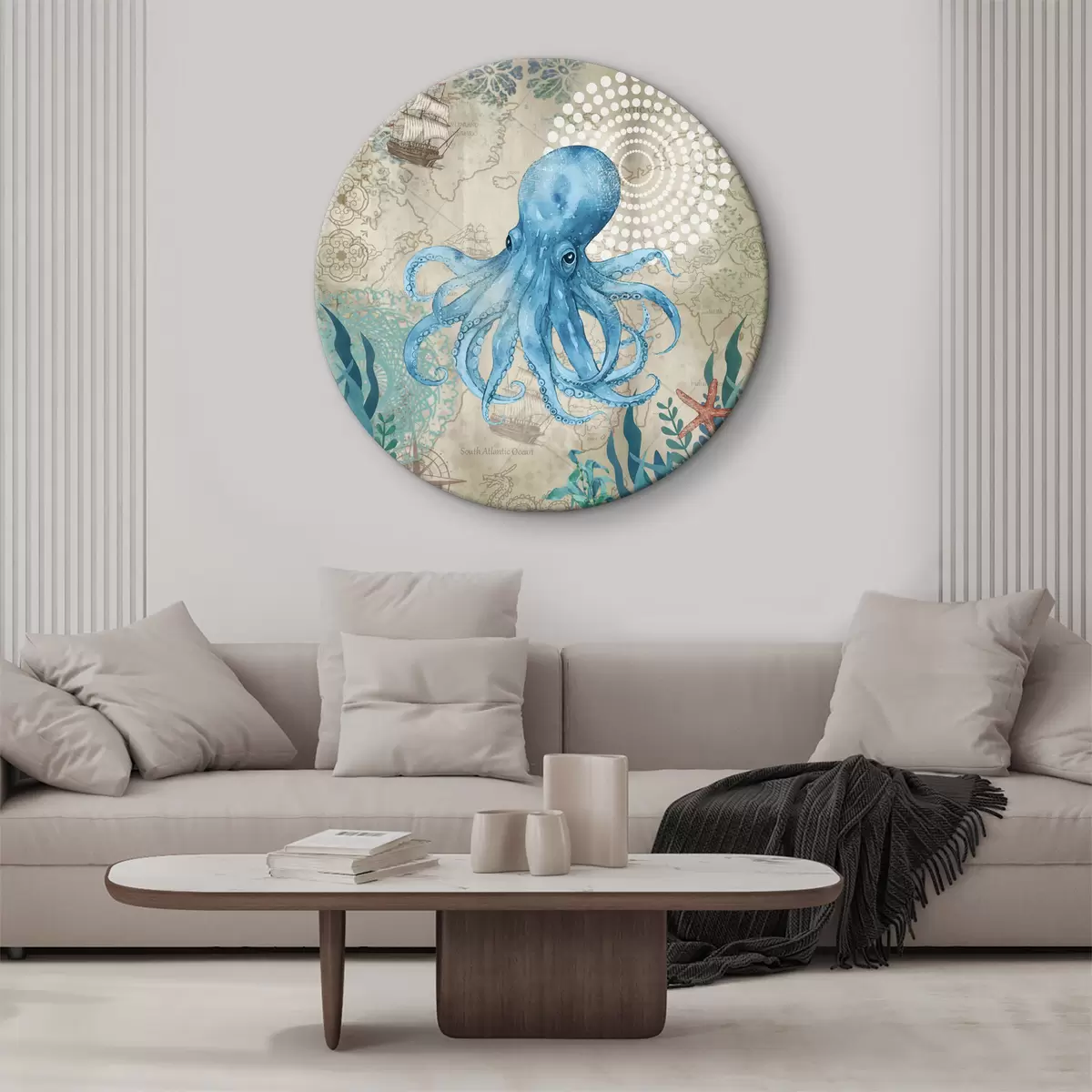 Runde Wandbilder Blauer Oktopus mit Meereskarte Nr r37154
