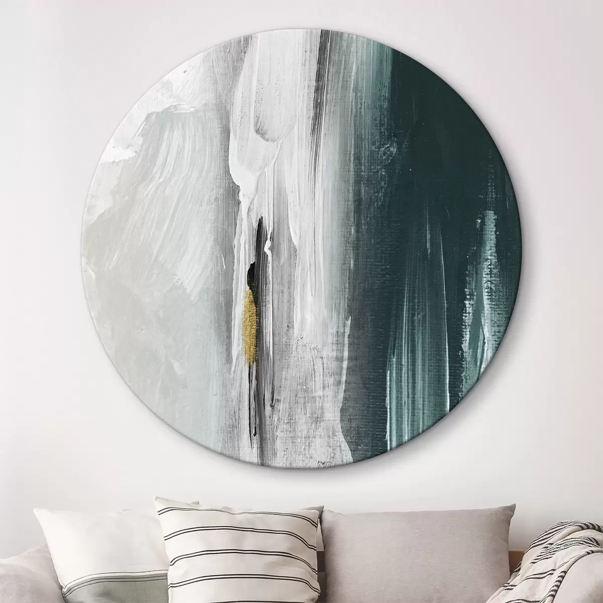Runde Wandbilder Abstrakte Malerei mit weißen und grünen Farben r37158