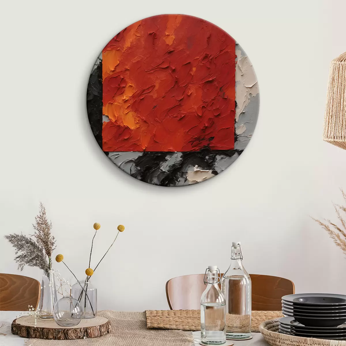 Runde Wandbilder Abstraktes Ölgemälde mit rotem Quadrat Nr r37167