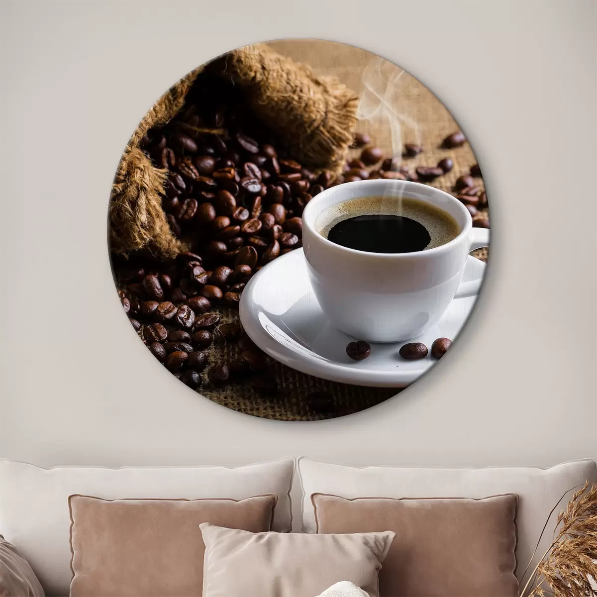 Runde Wandbilder Aromatischer Kaffee und Kaffeebohnen r37172