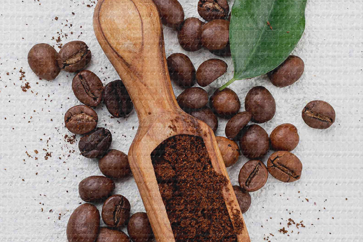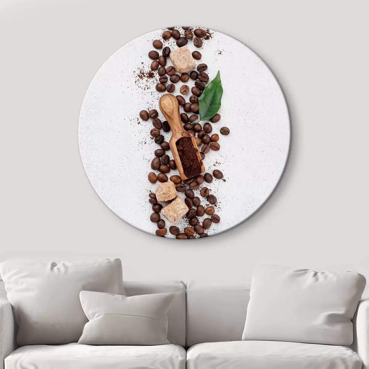 Runde Wandbilder Ein Löffel mit Kaffeebohnen und Zucker obenauf Nr r37178