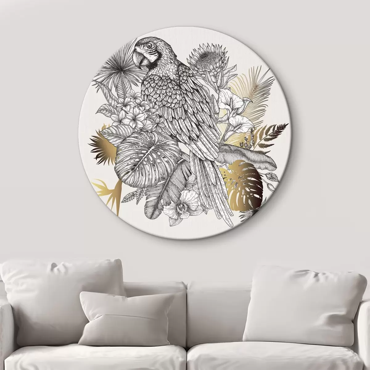 Runde Wandbilder Ein Vogel sitzt auf einem Ast mit Blättern Nr r37182