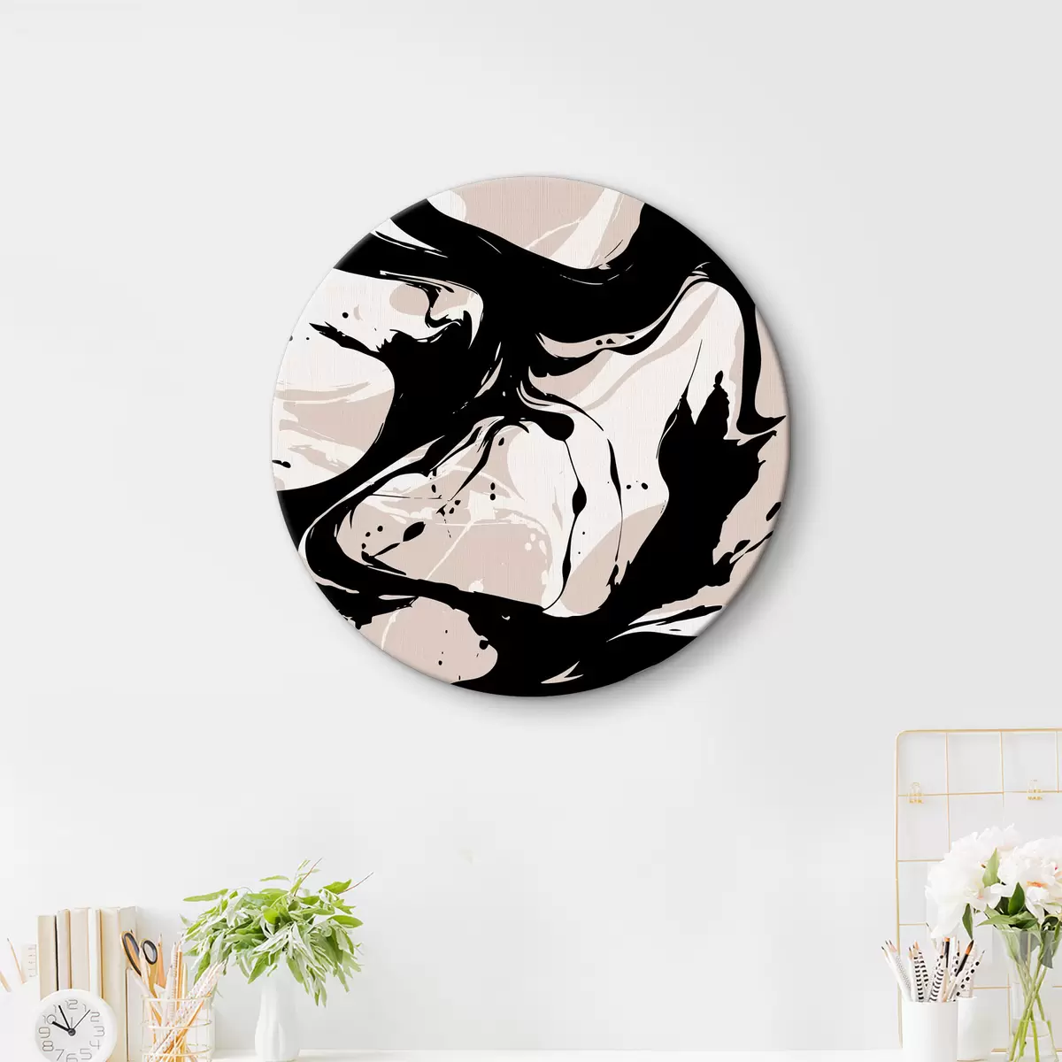 Runde Wandbilder Schwarzer und weißer Wirbel auf beigem Hintergrund r37286