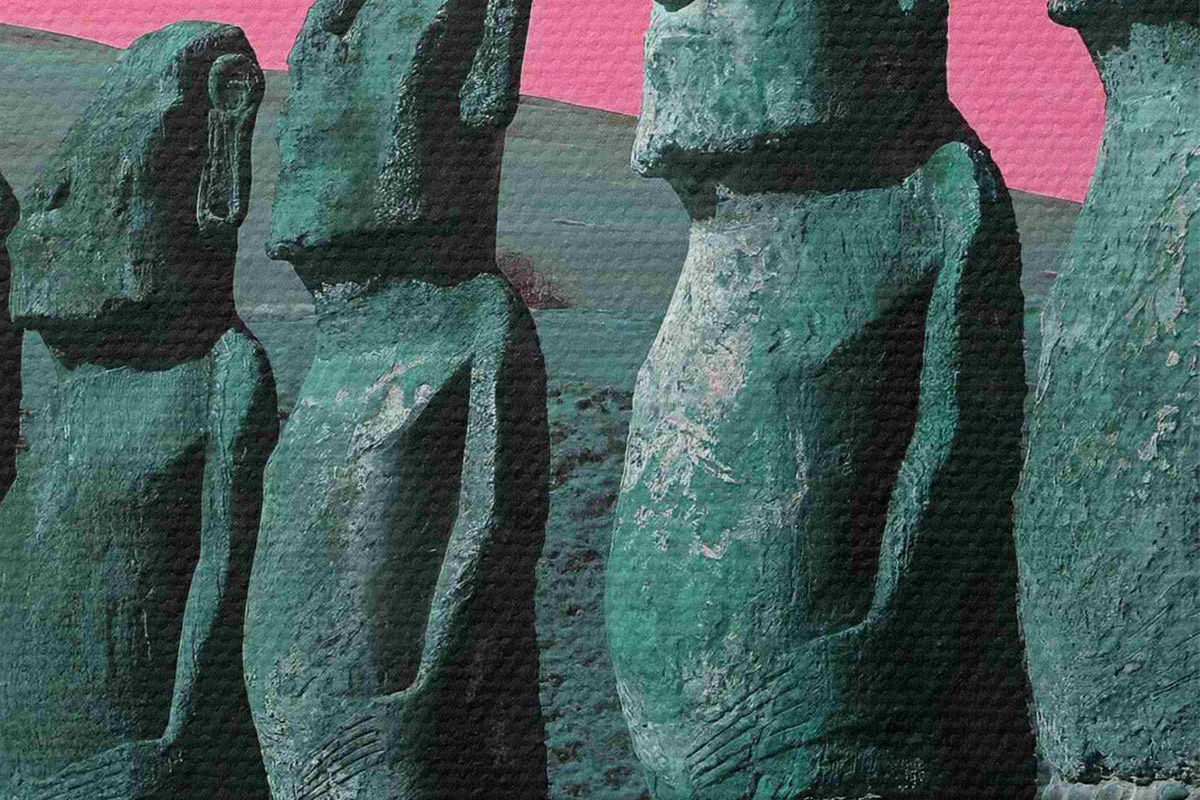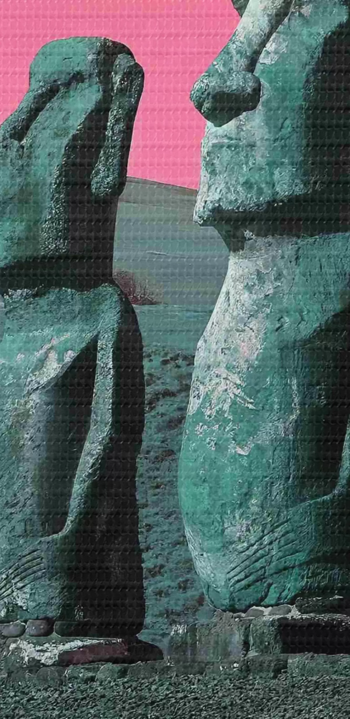 Runde Wandbilder Antike Statuen unter einem surrealen Himmel r37288