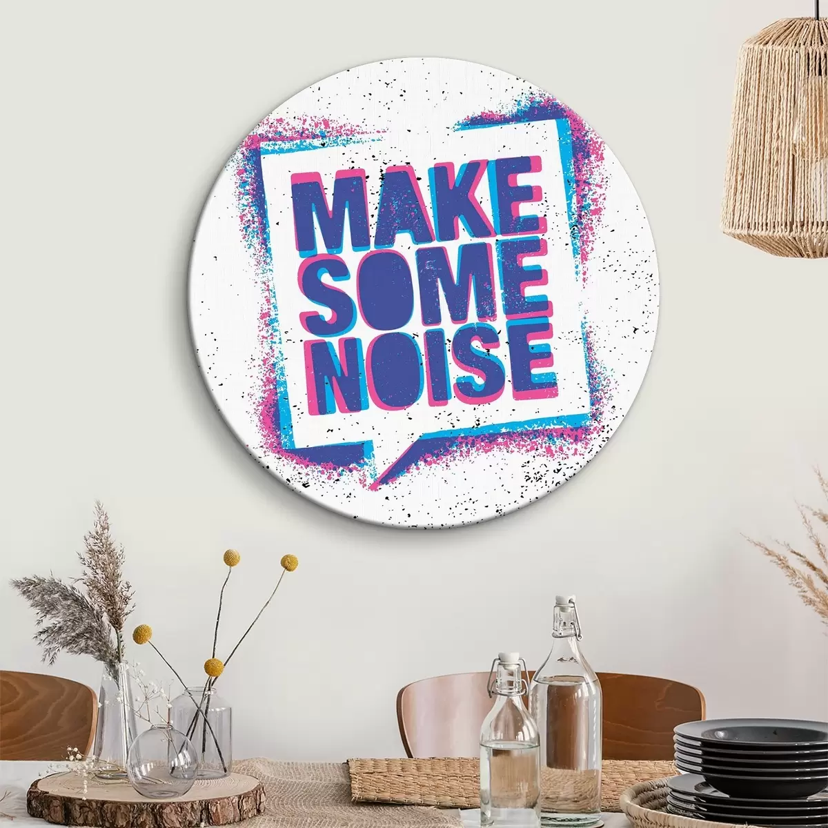 Runde Wandbilder Weißes Quadrat mit lila und blauem Text Nr r37290
