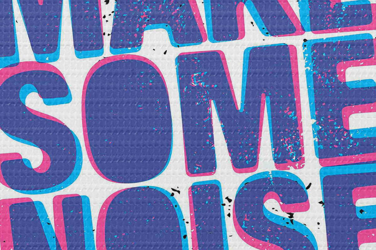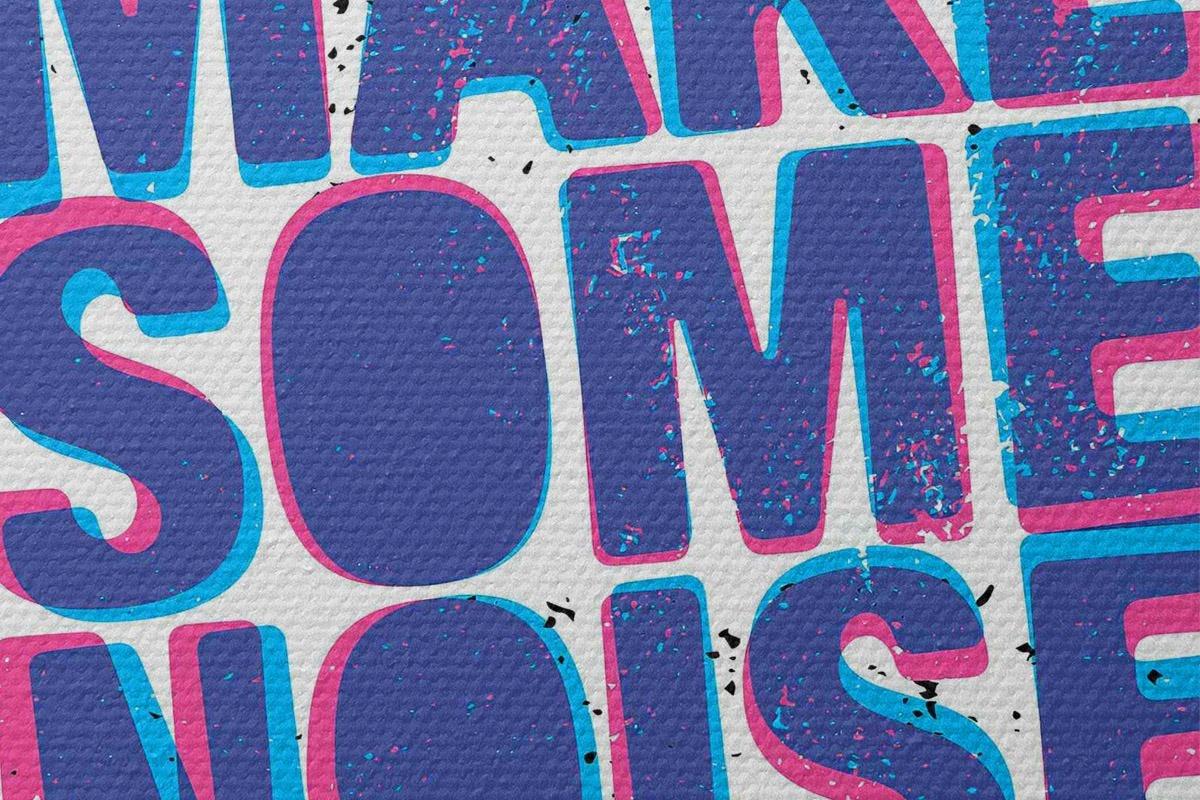 Runde Wandbilder Weißes Quadrat mit lila und blauem Text r37290
