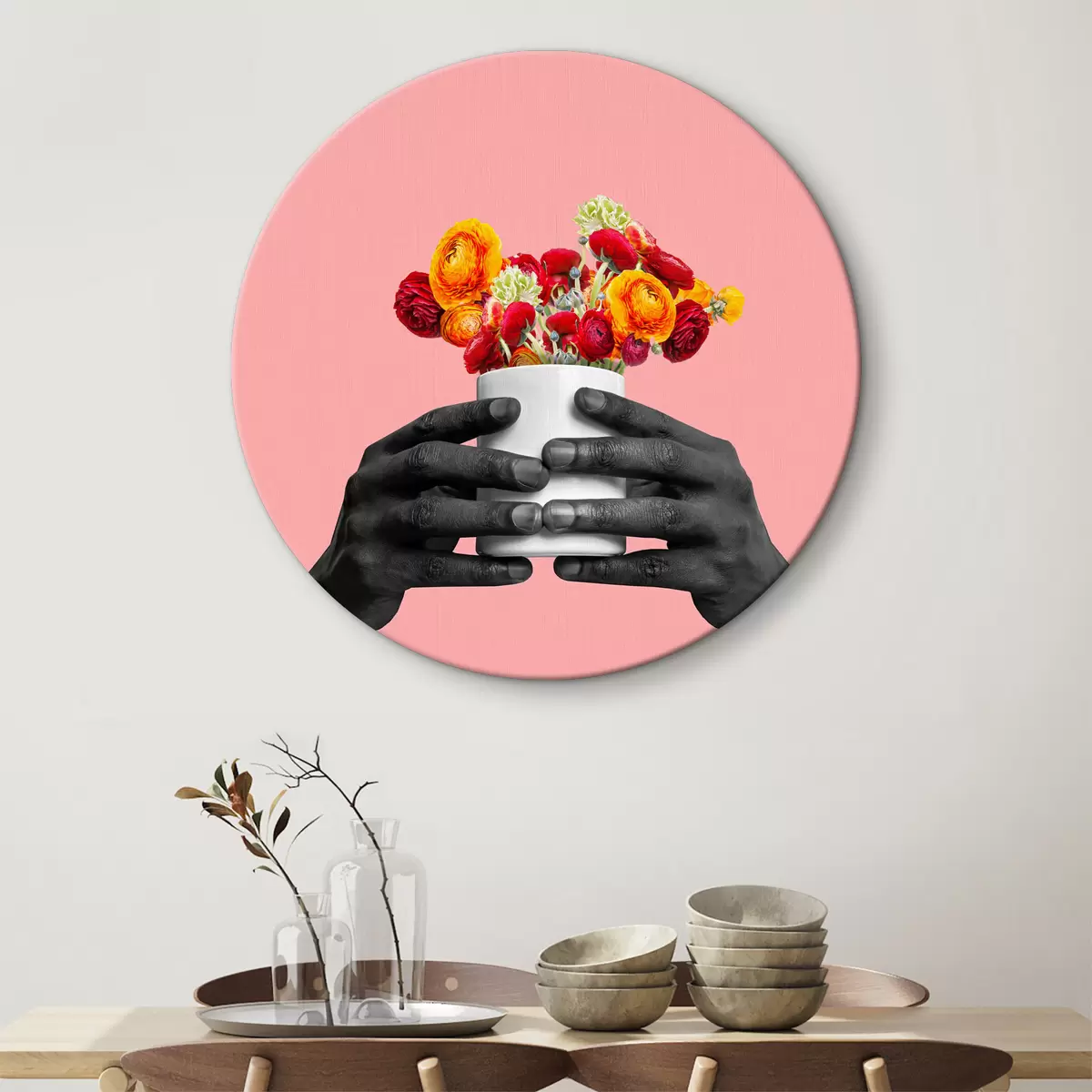Runde Wandbilder Topf mit Blumen Nr r37293