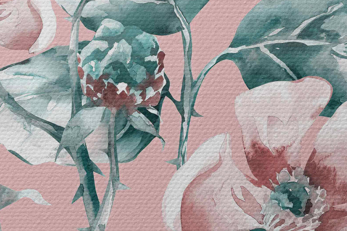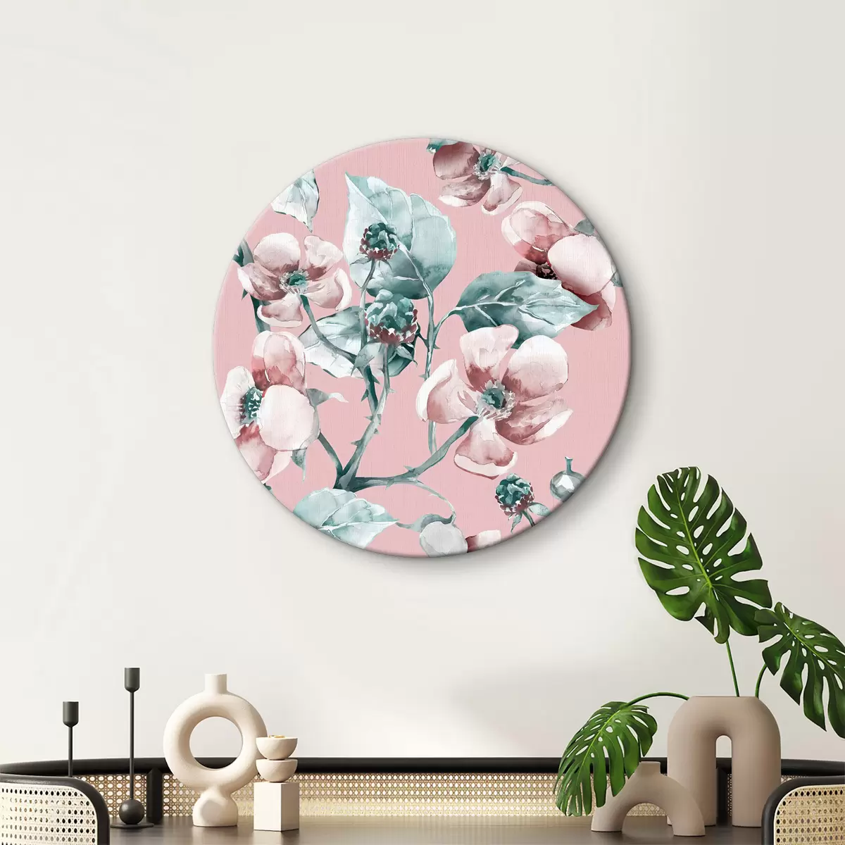 Runde Wandbilder Blumen auf rosa Hintergrund r37296