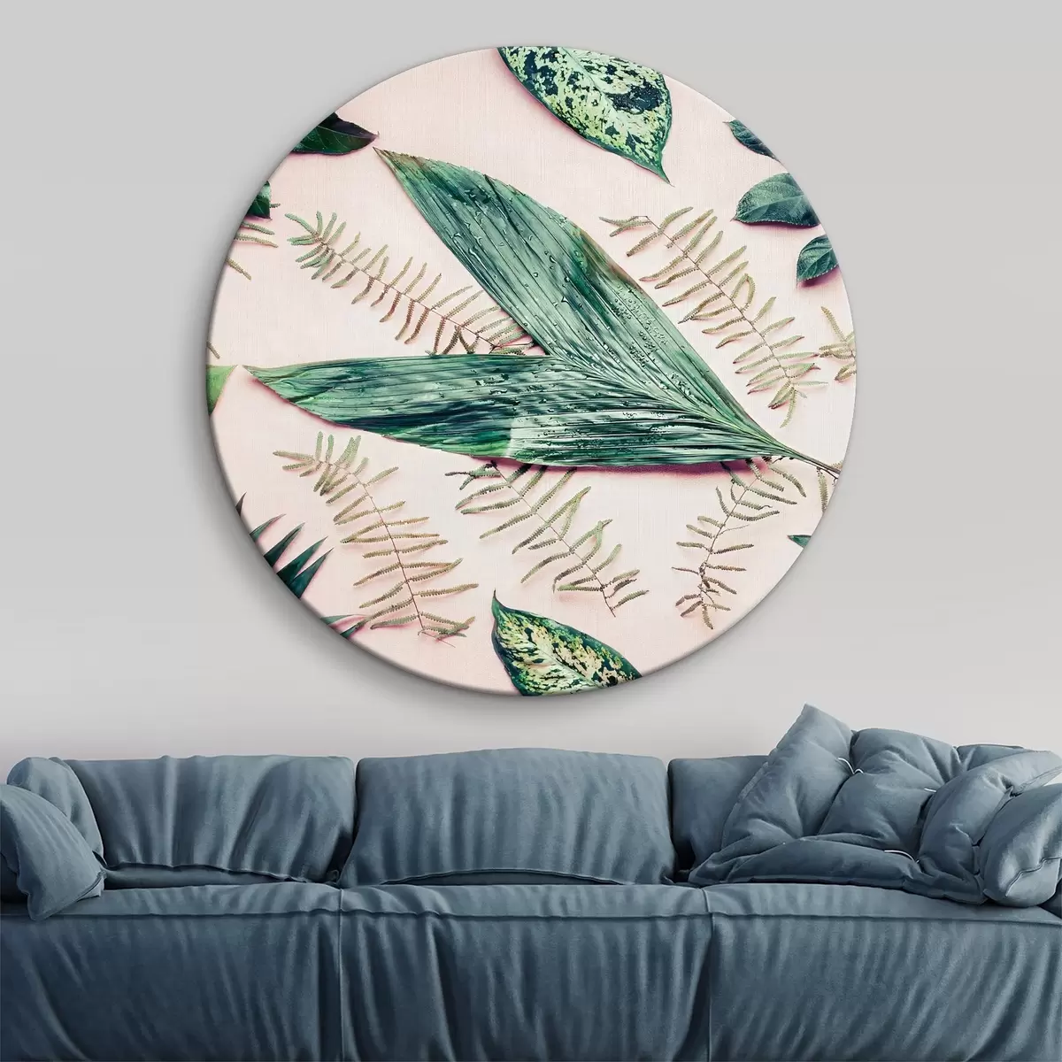 Runde Wandbilder Gruppe von grünen Blättern r37297