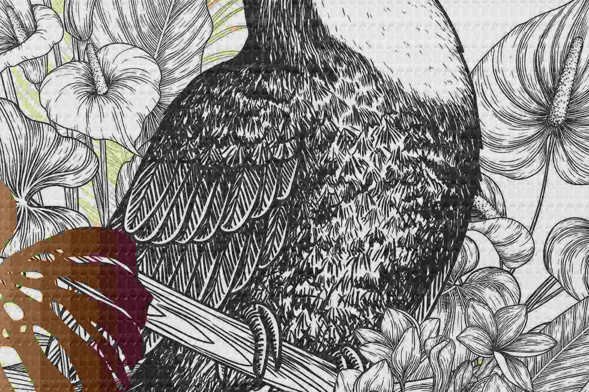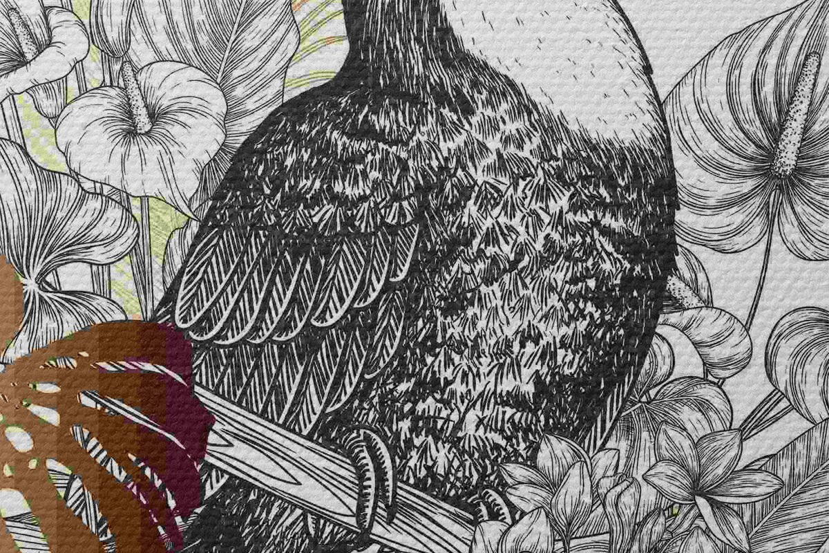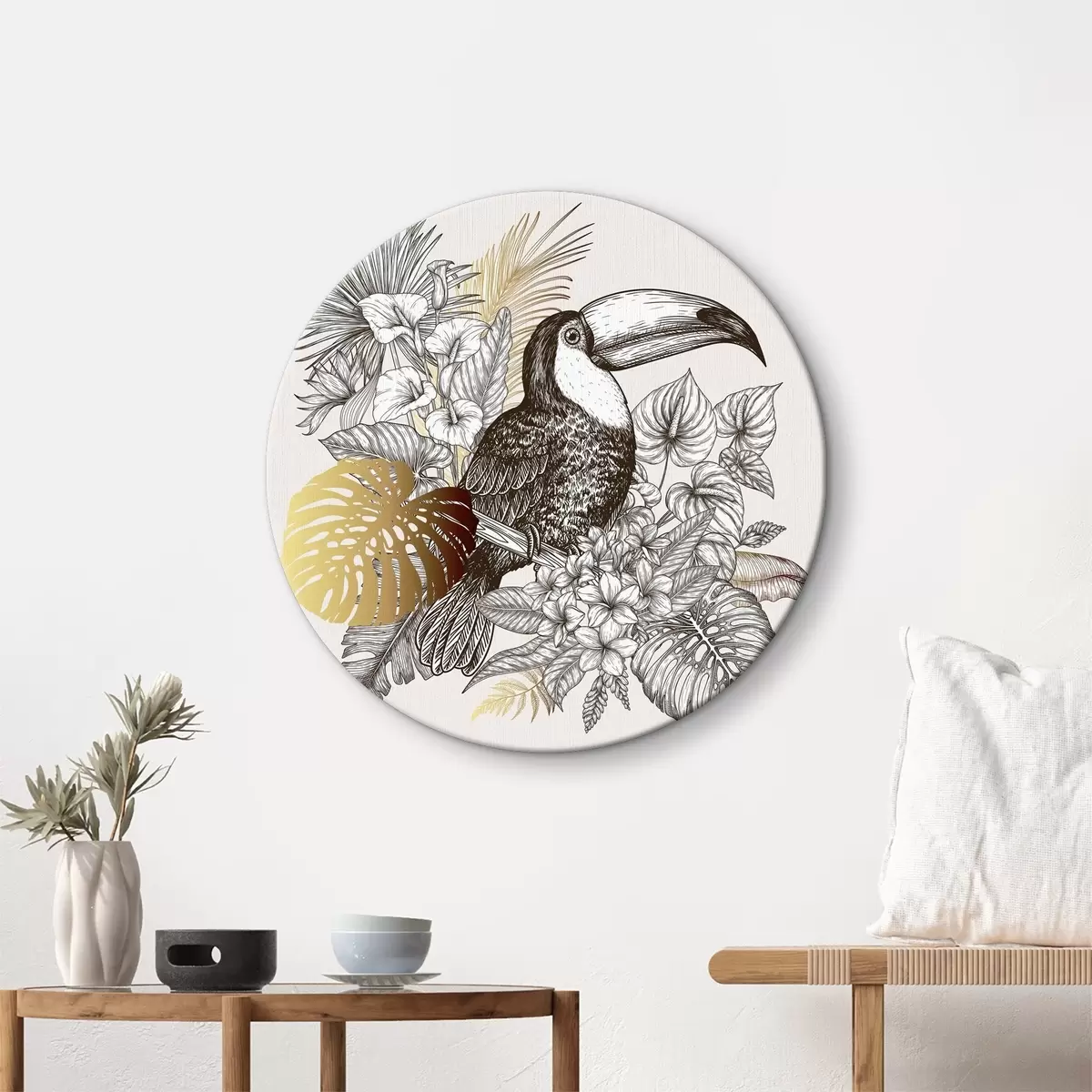 Runde Wandbilder Tukan mit Blättern und Blumen Nr r37303
