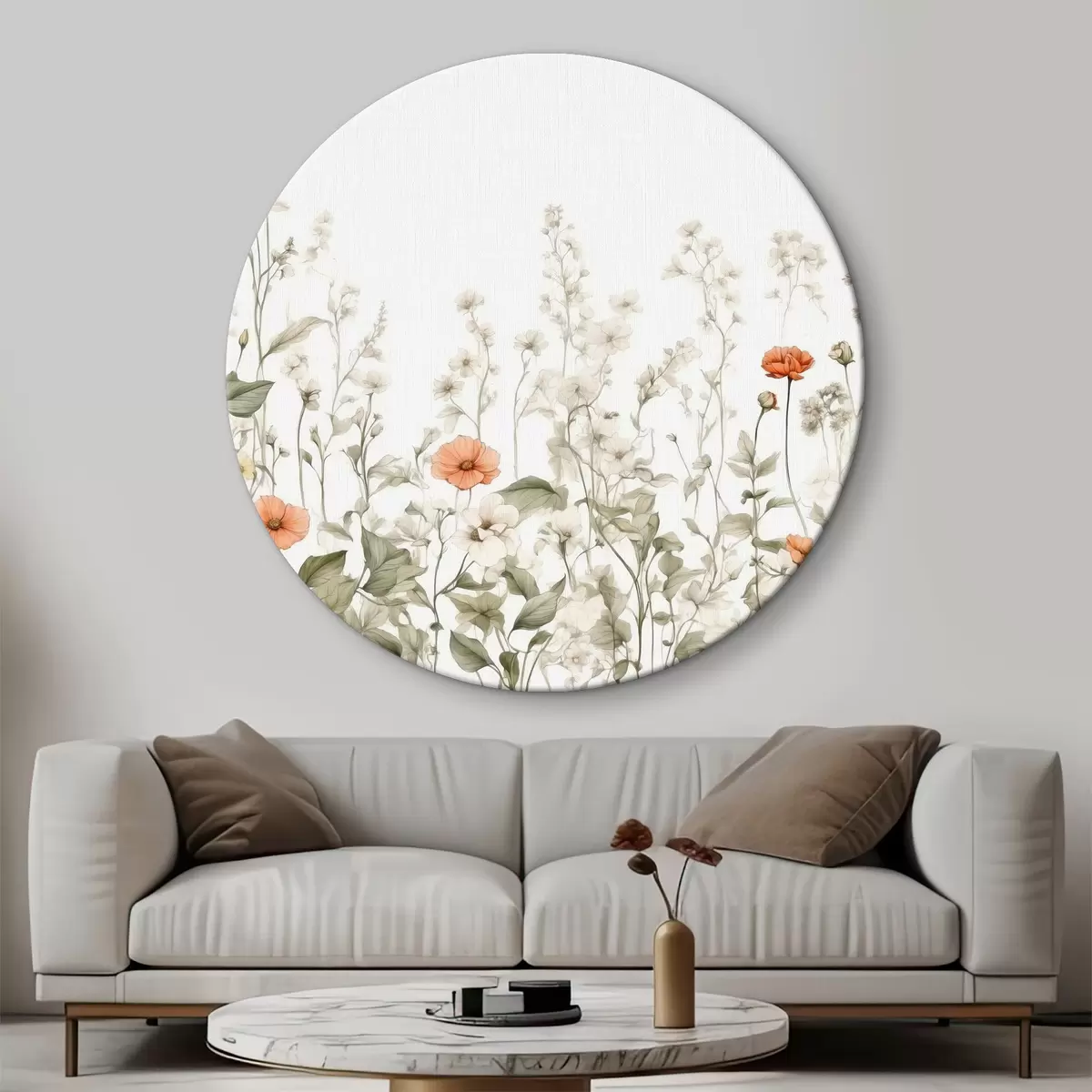 Runde Wandbilder Gruppe von Blumen mit Blättern r37334