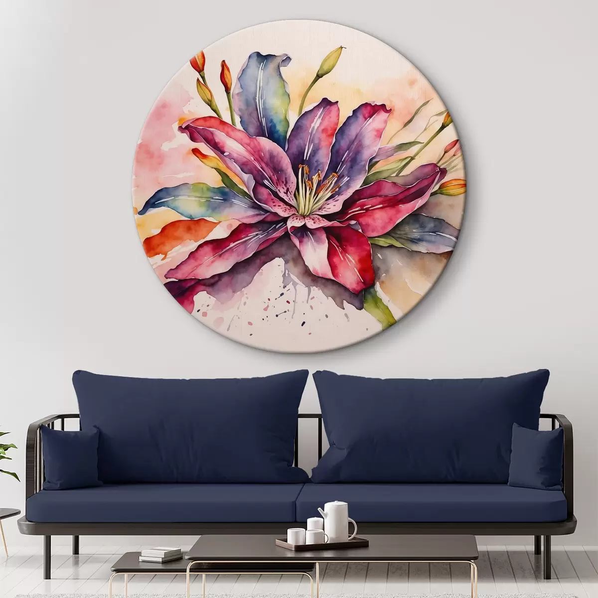 Runde Wandbilder Aquarellmalerei einer Blume Nr r37339