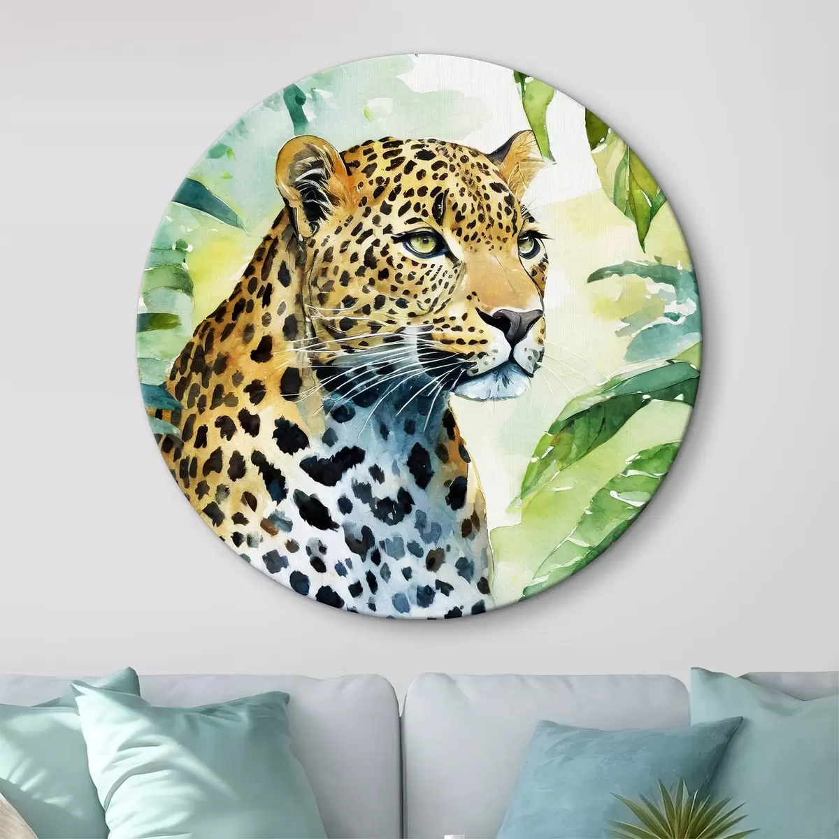 Runde Wandbilder Aquarell eines Leoparden Nr r37341