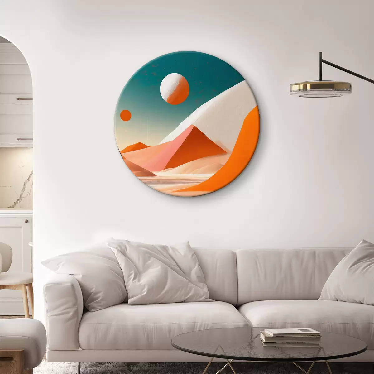 Runde Wandbilder Wüstenlandschaft mit Sandhügeln und einer Wasserfläche Nr r37367