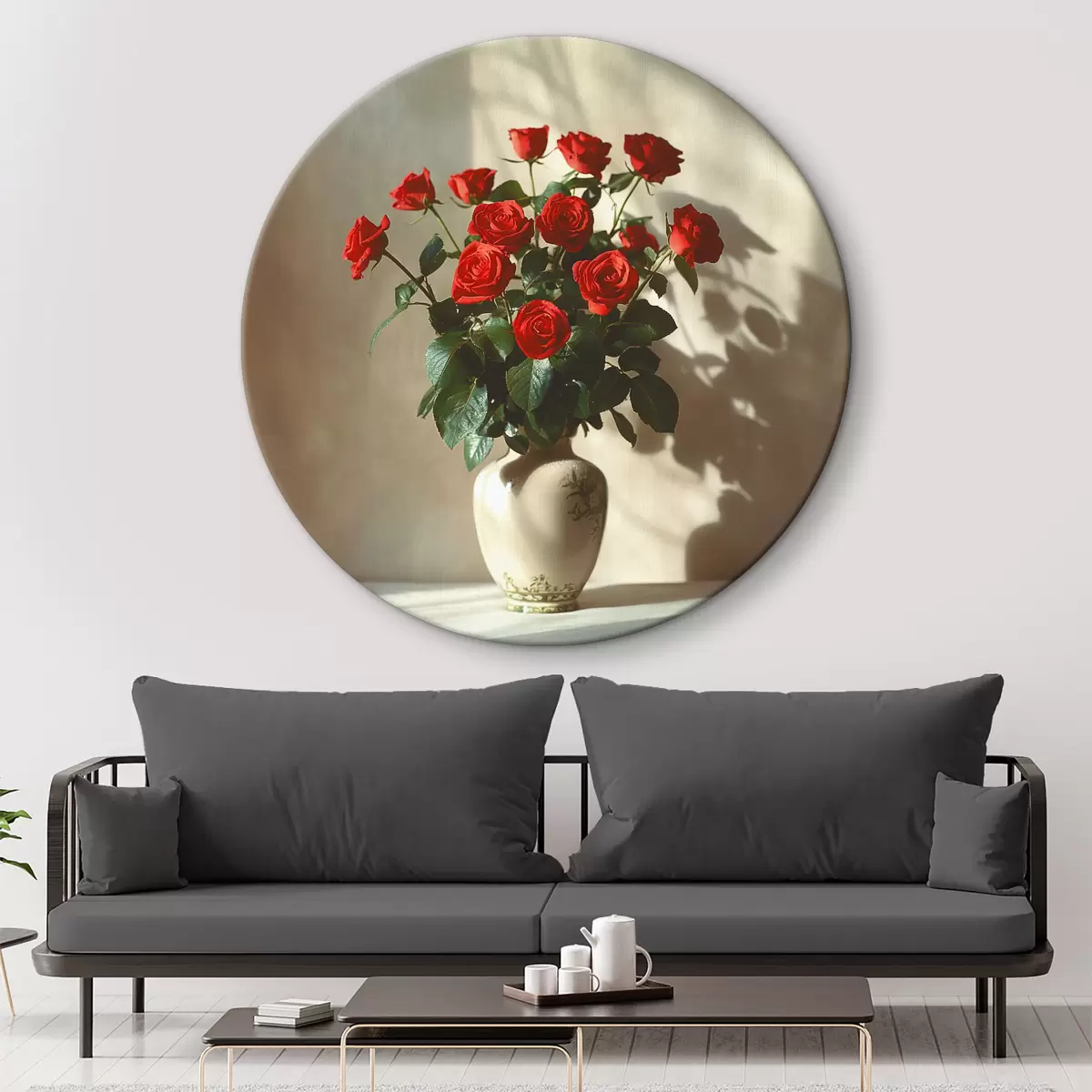Runde Wandbilder Vase mit roten Rosen Nr r37378