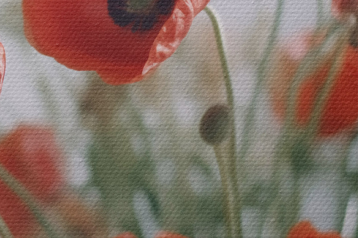 Drei Materialtypen stehen zur Verfügung: Economic Canvas - ein dichtes und haltbares Material für den Digitaldruck, identisch mit Malerleinwand, wasserfeste Oberfläche, realistische Wiedergabe von Details, mittelkörniges Material. Premium Canvas - die Textur ähnelt der einer Malerleinwand (verwobene kleine Fäden). Weiche, detaillierte Wiedergabe des Bildes auf einer matten Oberfläche. Eco-Premium - hochwertiges Gewebe aus 100% Baumwolle. Dank der natürlichen Baumwollfasern ist das Material langlebig und verschleißfest. Hervorragende Farbwiedergabe und Detailtreue.