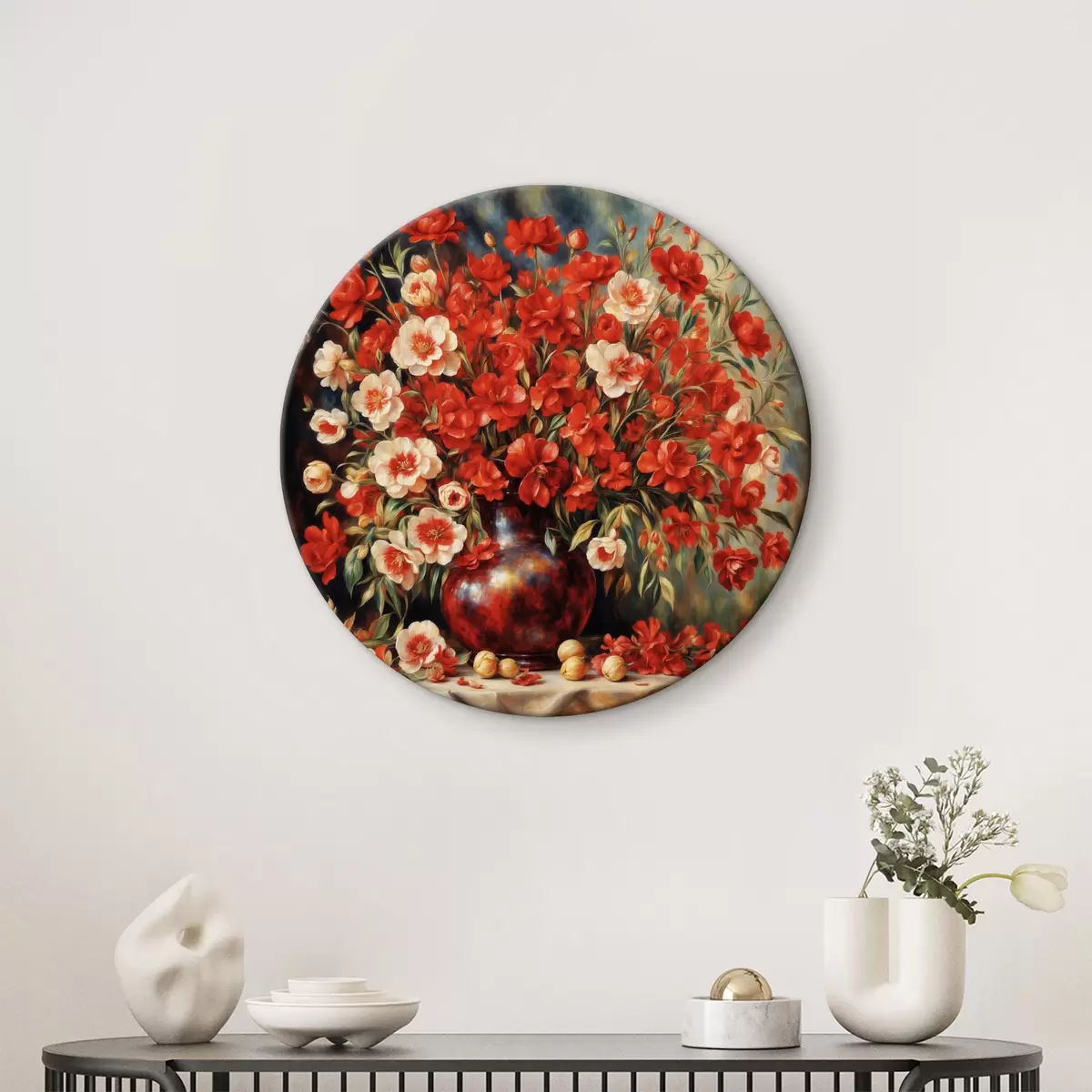 Runde Wandbilder Roter Blumenstrauß im Stil von Auguste Renoir. Nr r37439