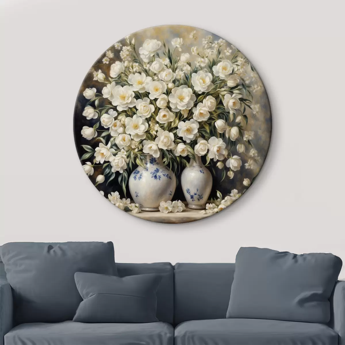 Runde Wandbilder Weiße Vase mit einem großen Strauß weißer Blumen Nr r37440