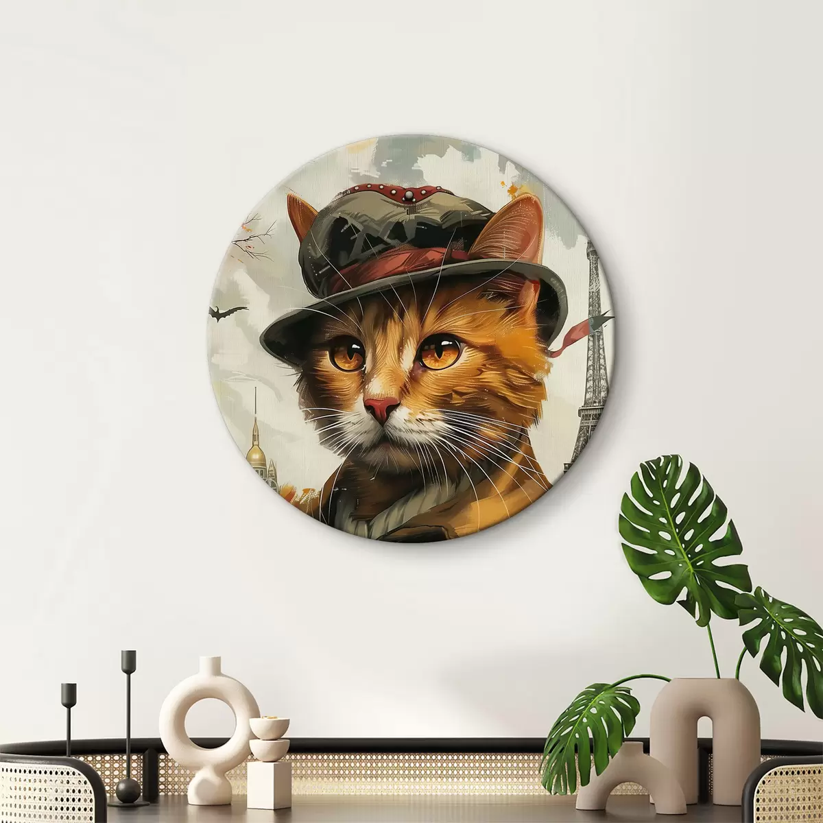 Runde Wandbilder Katze mit Hut und Mantel r37457
