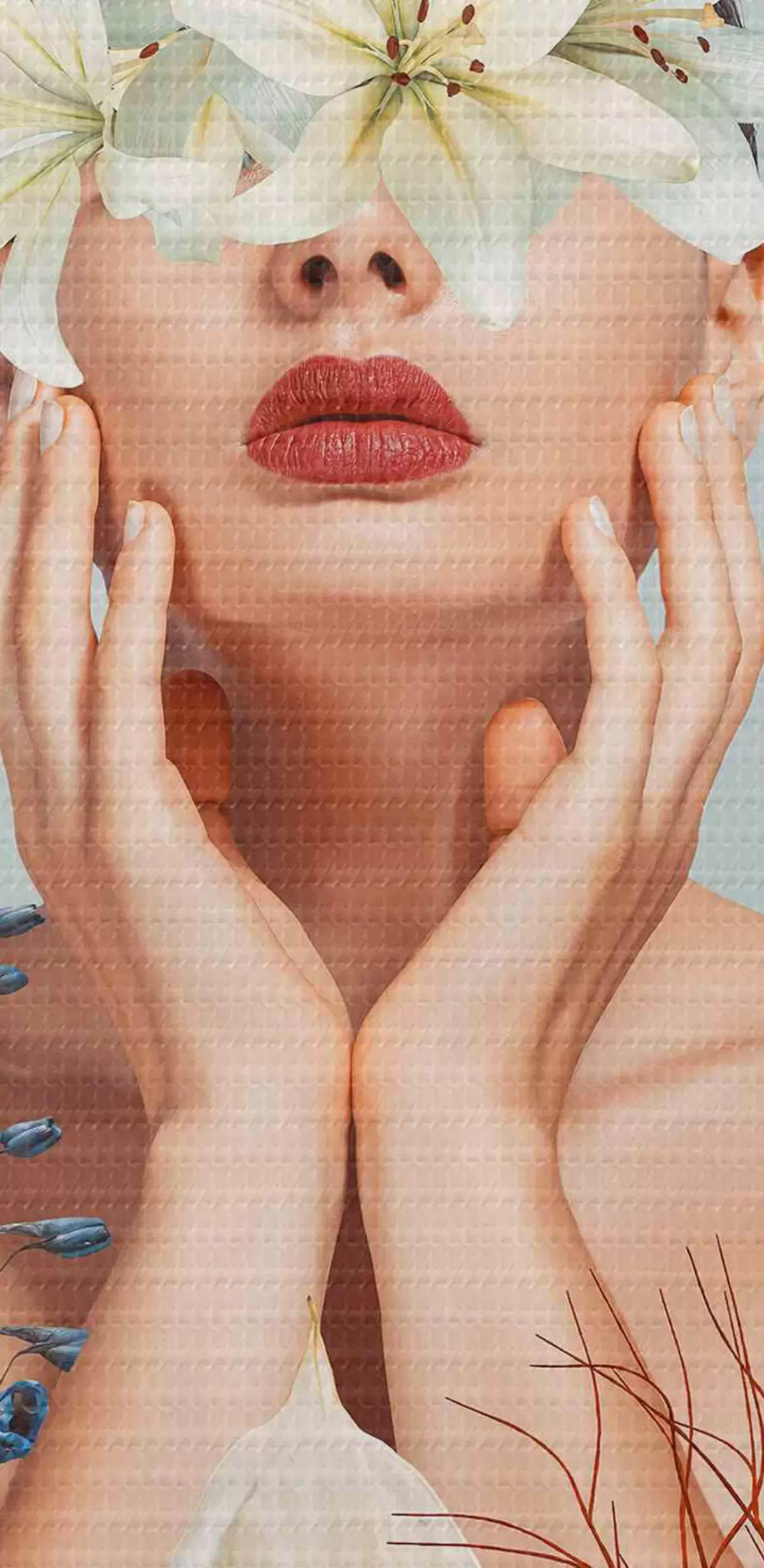 Runde Wandbilder Frau mit Blumen um ihr Gesicht r37477