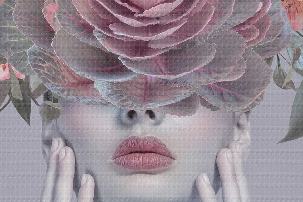 Runde Wandbilder Frau mit Blumen auf dem Kopf r37479