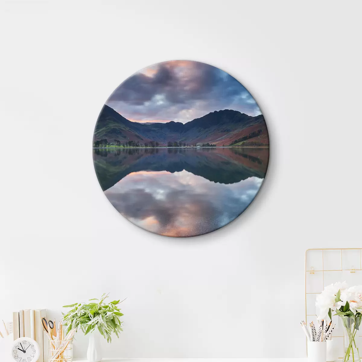 Runde Wandbilder See mit Bergen im Hintergrund r37533