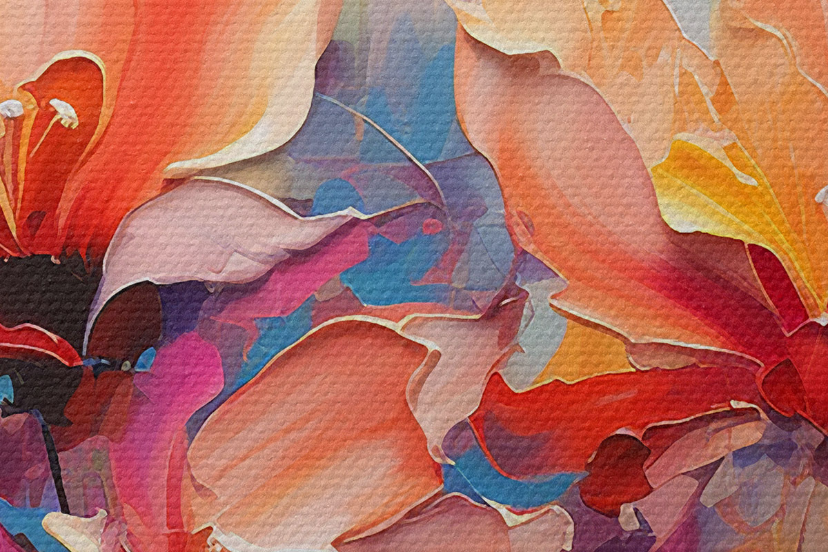 Drei Materialtypen stehen zur Verfügung: Economic Canvas - ein dichtes und haltbares Material für den Digitaldruck, identisch mit Malerleinwand, wasserfeste Oberfläche, realistische Wiedergabe von Details, mittelkörniges Material. Premium Canvas - die Textur ähnelt der einer Malerleinwand (verwobene kleine Fäden). Weiche, detaillierte Wiedergabe des Bildes auf einer matten Oberfläche. Eco-Premium - hochwertiges Gewebe aus 100% Baumwolle. Dank der natürlichen Baumwollfasern ist das Material langlebig und verschleißfest. Hervorragende Farbwiedergabe und Detailtreue.