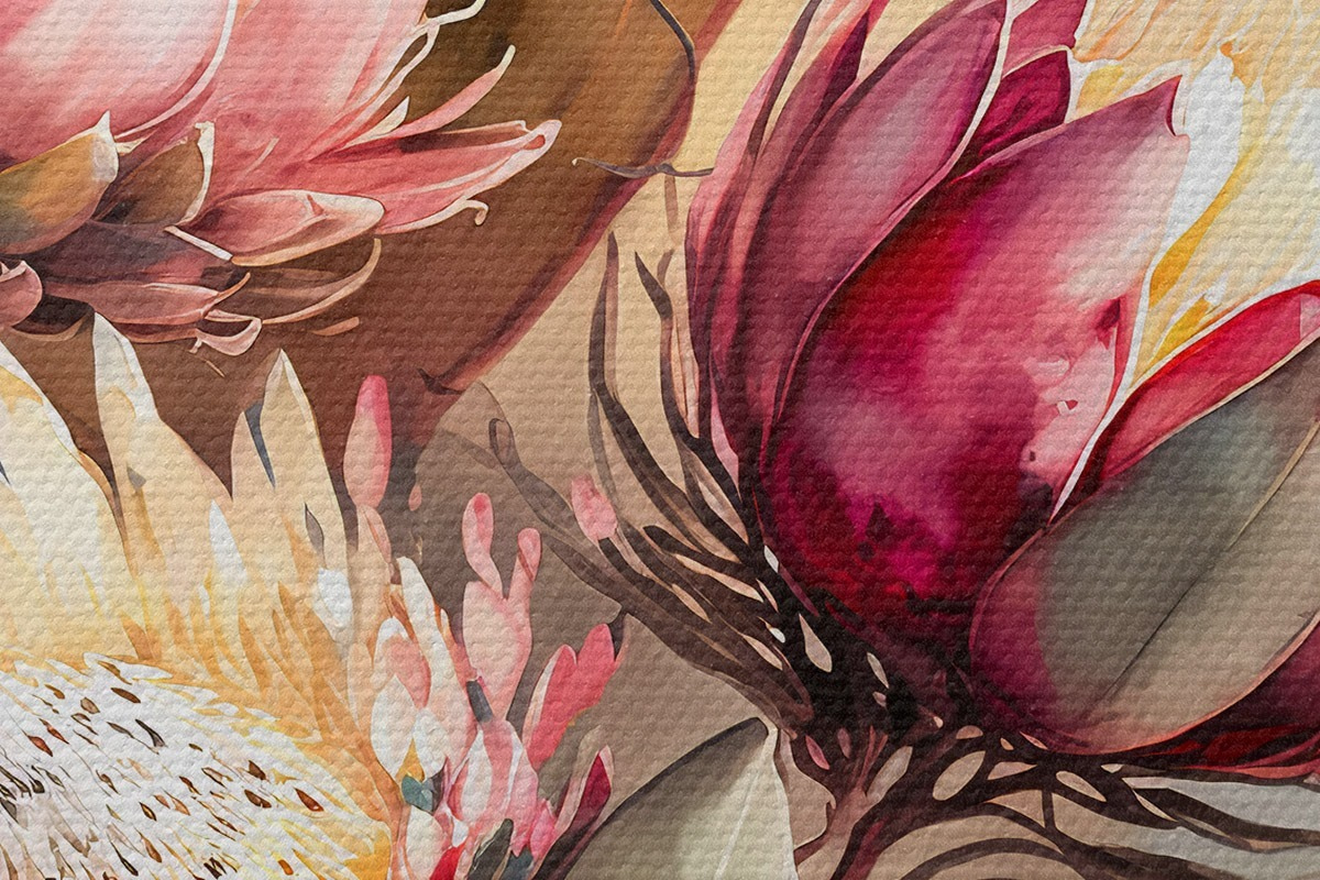 Drei Materialtypen stehen zur Verfügung: Economic Canvas - ein dichtes und haltbares Material für den Digitaldruck, identisch mit Malerleinwand, wasserfeste Oberfläche, realistische Wiedergabe von Details, mittelkörniges Material. Premium Canvas - die Textur ähnelt der einer Malerleinwand (verwobene kleine Fäden). Weiche, detaillierte Wiedergabe des Bildes auf einer matten Oberfläche. Eco-Premium - hochwertiges Gewebe aus 100% Baumwolle. Dank der natürlichen Baumwollfasern ist das Material langlebig und verschleißfest. Hervorragende Farbwiedergabe und Detailtreue.