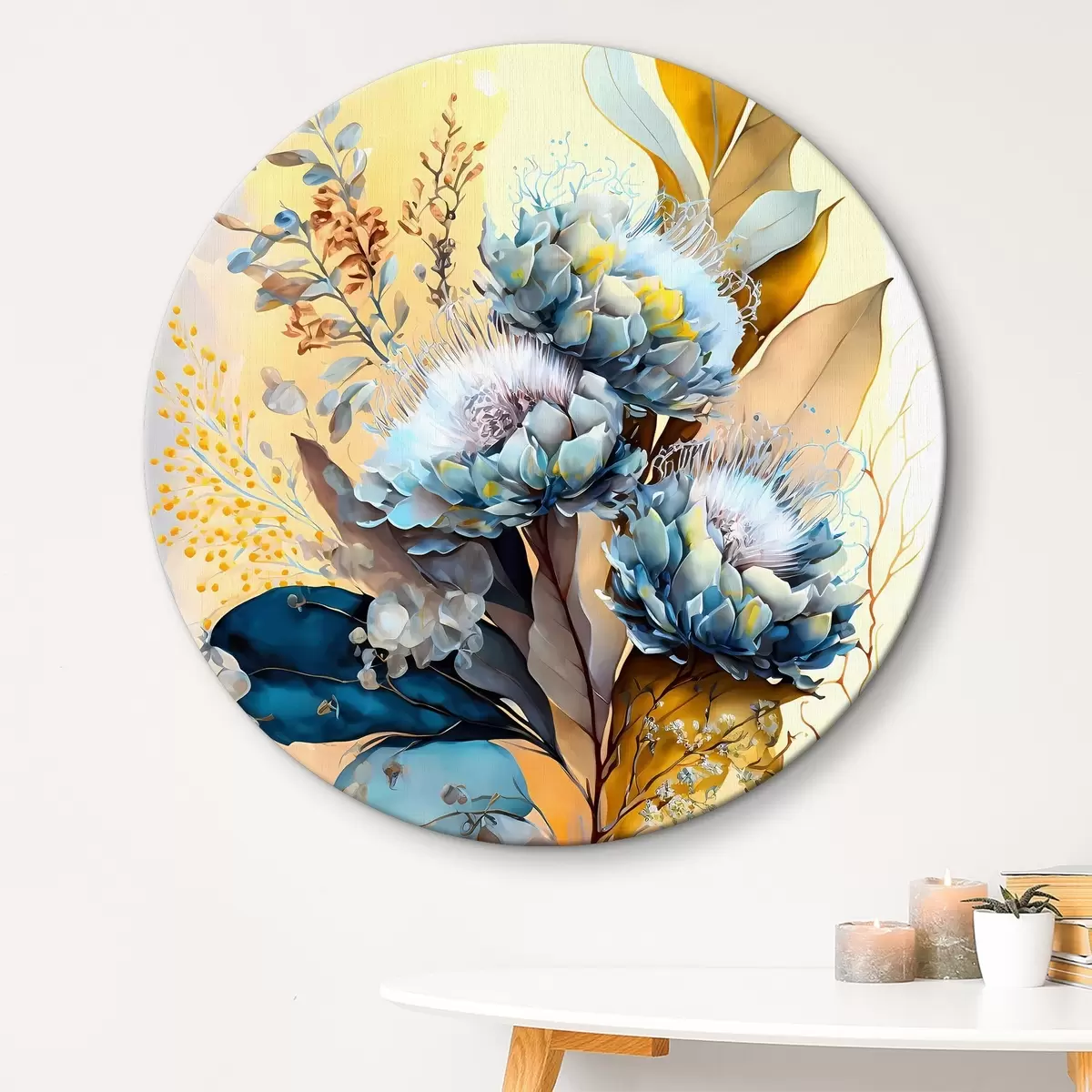 Runde Wandbilder Ein Gemälde mit Blumen und Blättern Nr r37550