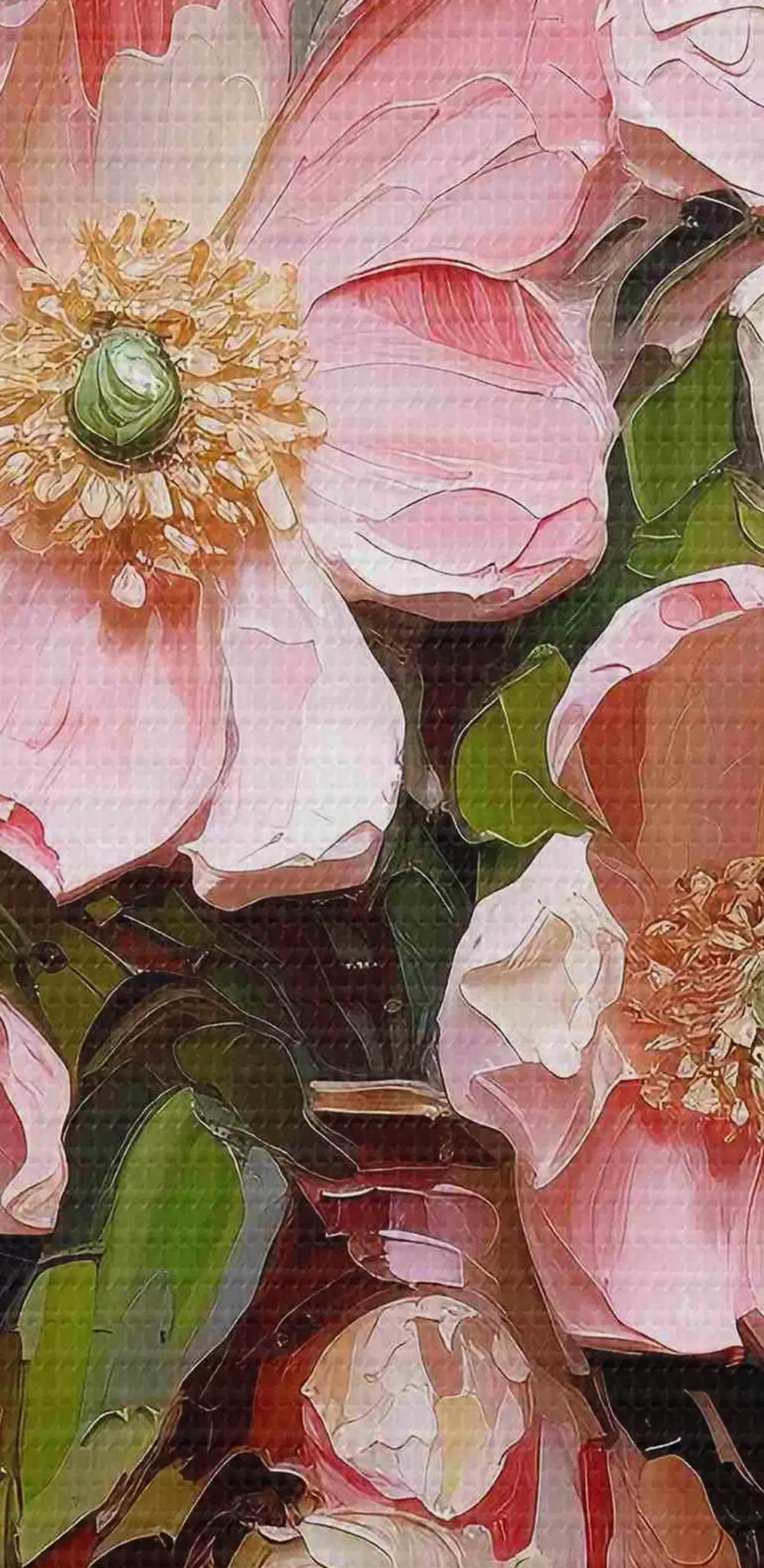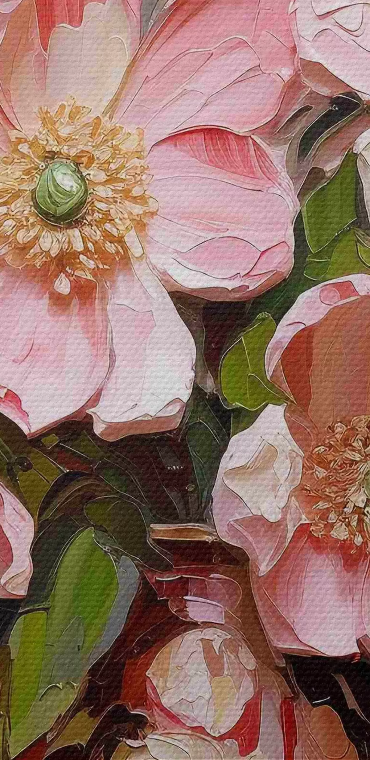 Runde Wandbilder Ein Gemälde mit rosa Blumen in einer Vase r37558