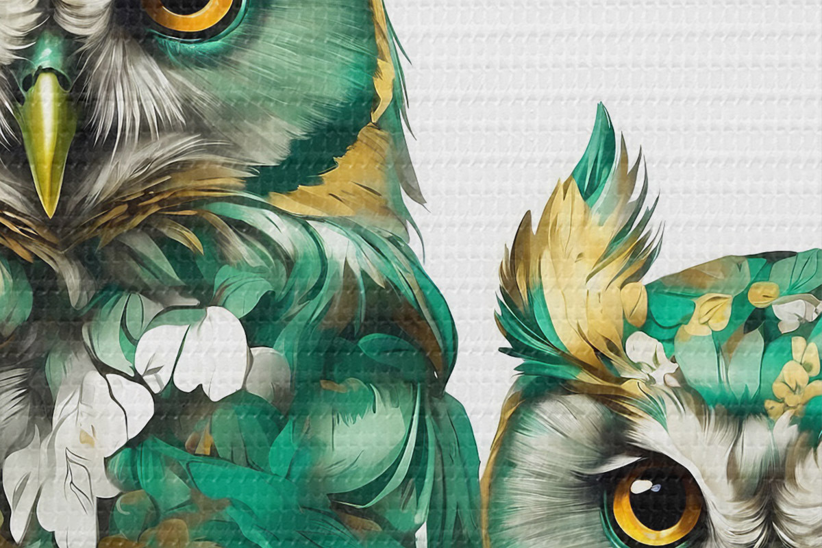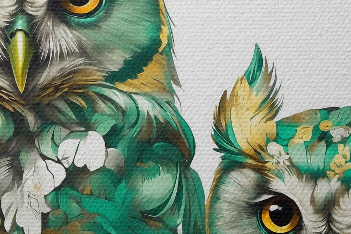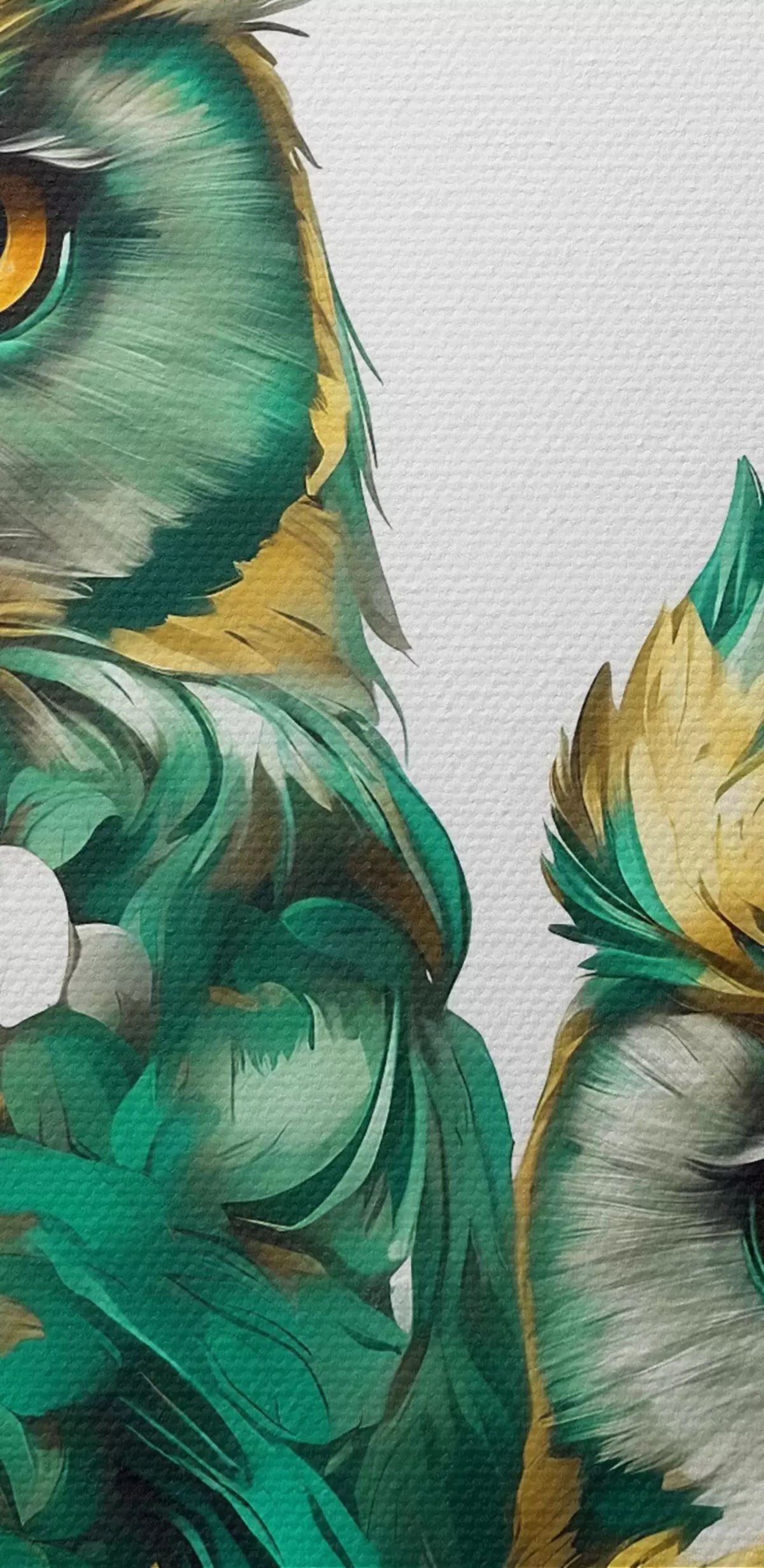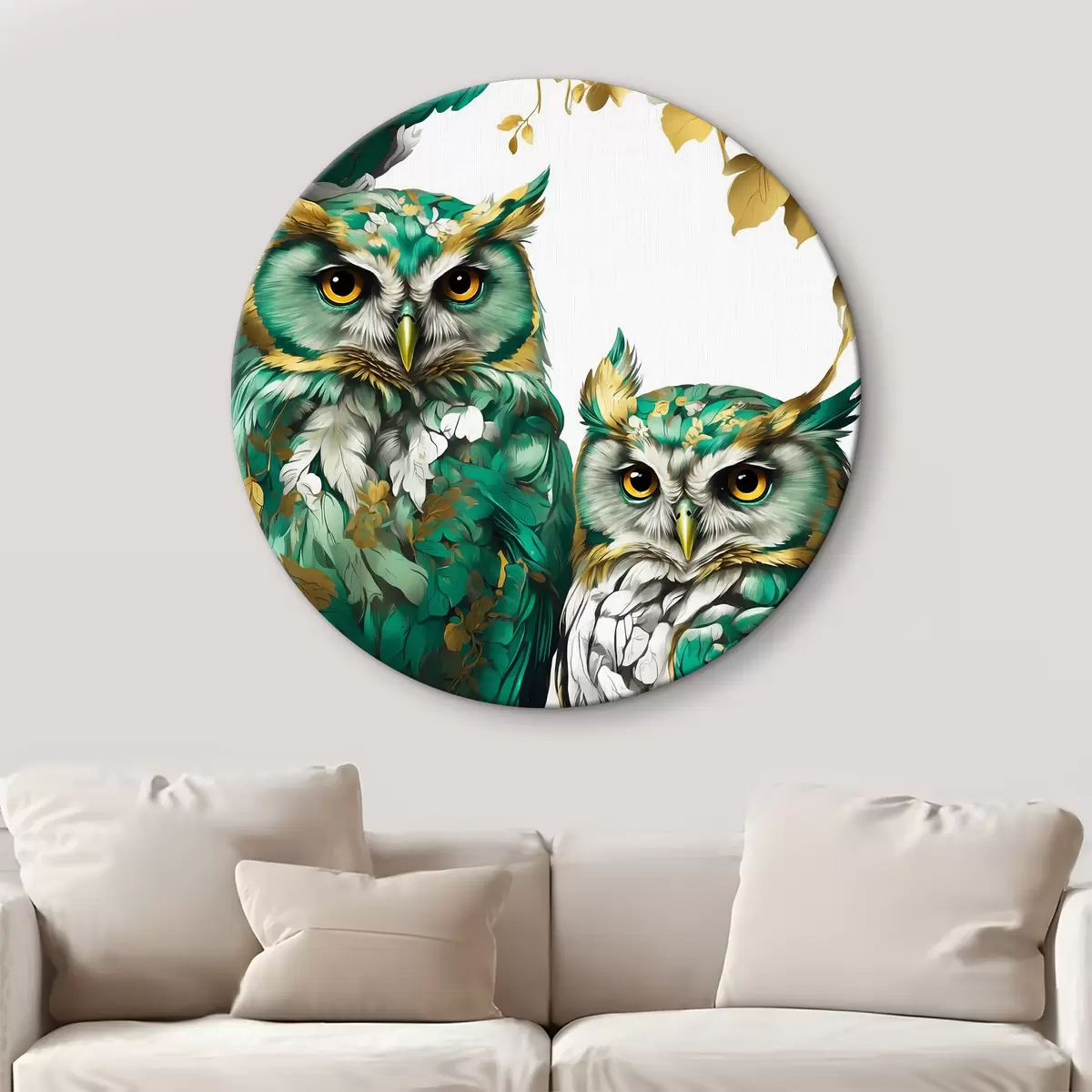 Runde Wandbilder Zwei grüne Eulen im Laub Nr r37569