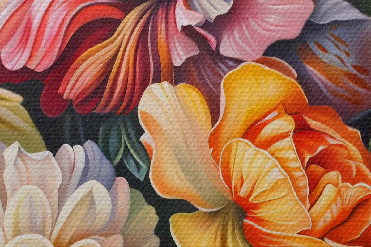 Drei Materialtypen stehen zur Verfügung: Economic Canvas - ein dichtes und haltbares Material für den Digitaldruck, identisch mit Malerleinwand, wasserfeste Oberfläche, realistische Wiedergabe von Details, mittelkörniges Material. Premium Canvas - die Textur ähnelt der einer Malerleinwand (verwobene kleine Fäden). Weiche, detaillierte Wiedergabe des Bildes auf einer matten Oberfläche. Eco-Premium - hochwertiges Gewebe aus 100% Baumwolle. Dank der natürlichen Baumwollfasern ist das Material langlebig und verschleißfest. Hervorragende Farbwiedergabe und Detailtreue.