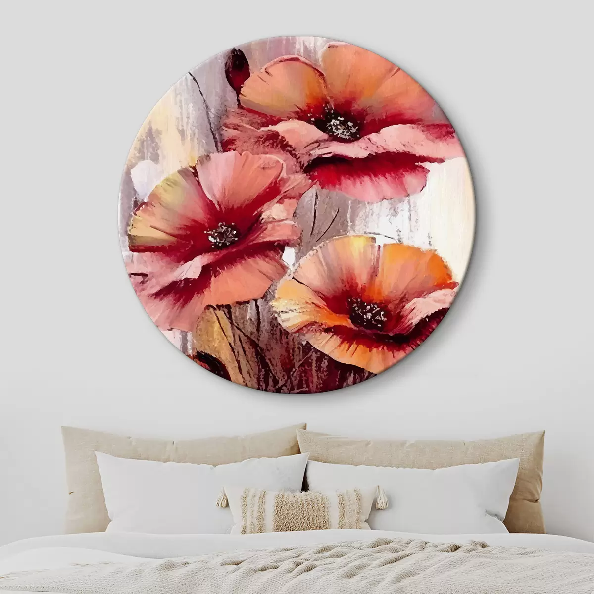 Runde Wandbilder Rote Mohnblumen in Aquarell Nr r37743