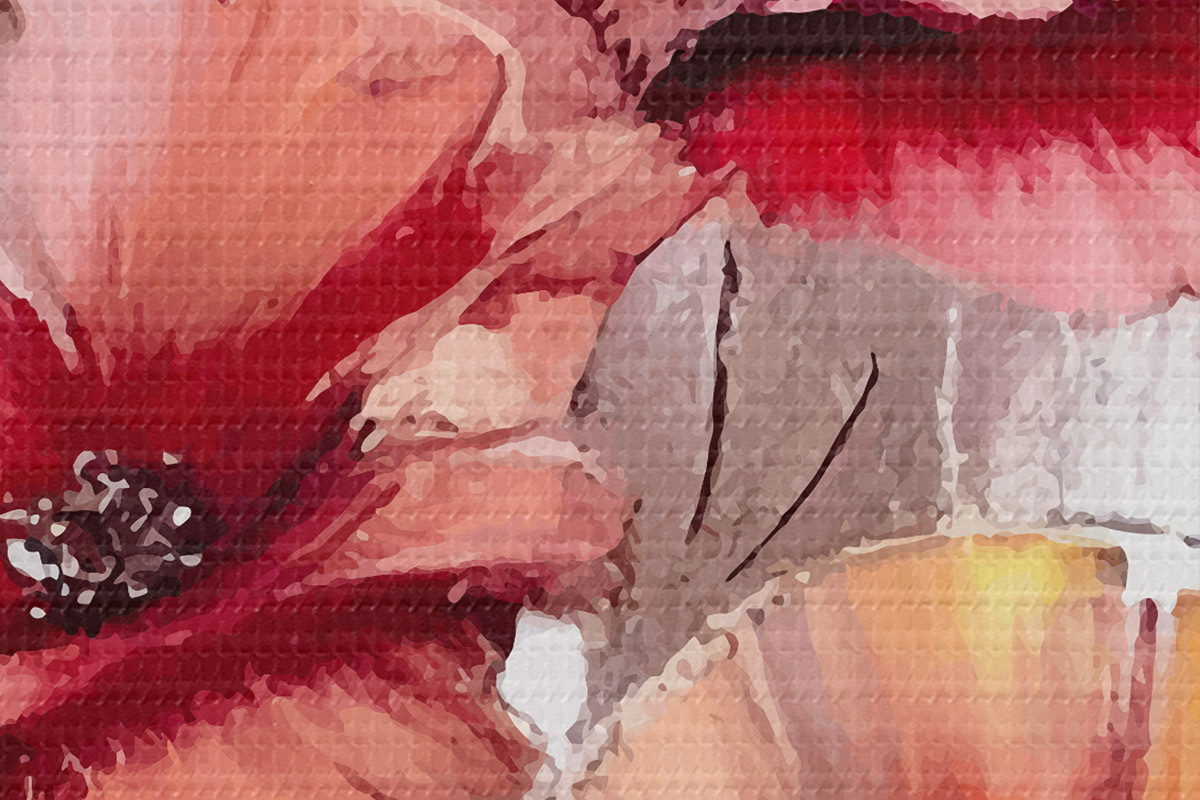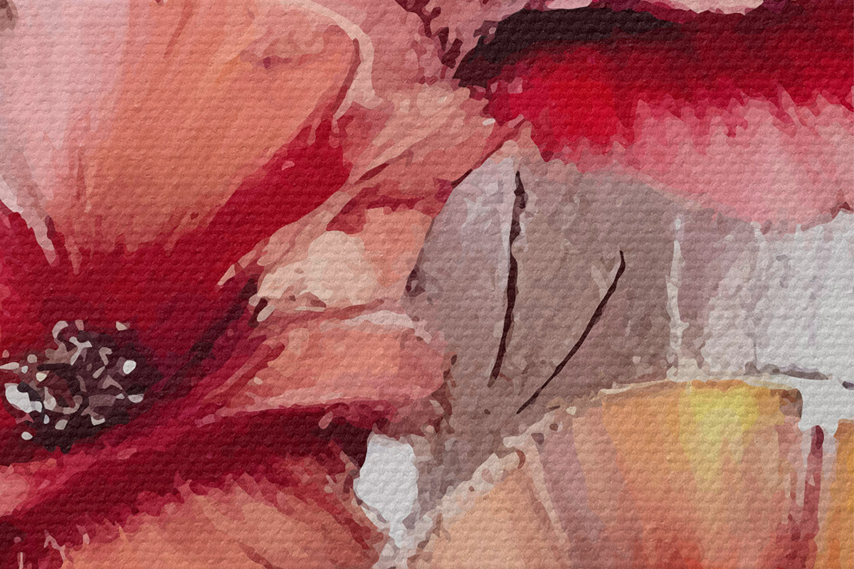 Drei Materialtypen stehen zur Verfügung: Economic Canvas - ein dichtes und haltbares Material für den Digitaldruck, identisch mit Malerleinwand, wasserfeste Oberfläche, realistische Wiedergabe von Details, mittelkörniges Material. Premium Canvas - die Textur ähnelt der einer Malerleinwand (verwobene kleine Fäden). Weiche, detaillierte Wiedergabe des Bildes auf einer matten Oberfläche. Eco-Premium - hochwertiges Gewebe aus 100% Baumwolle. Dank der natürlichen Baumwollfasern ist das Material langlebig und verschleißfest. Hervorragende Farbwiedergabe und Detailtreue.