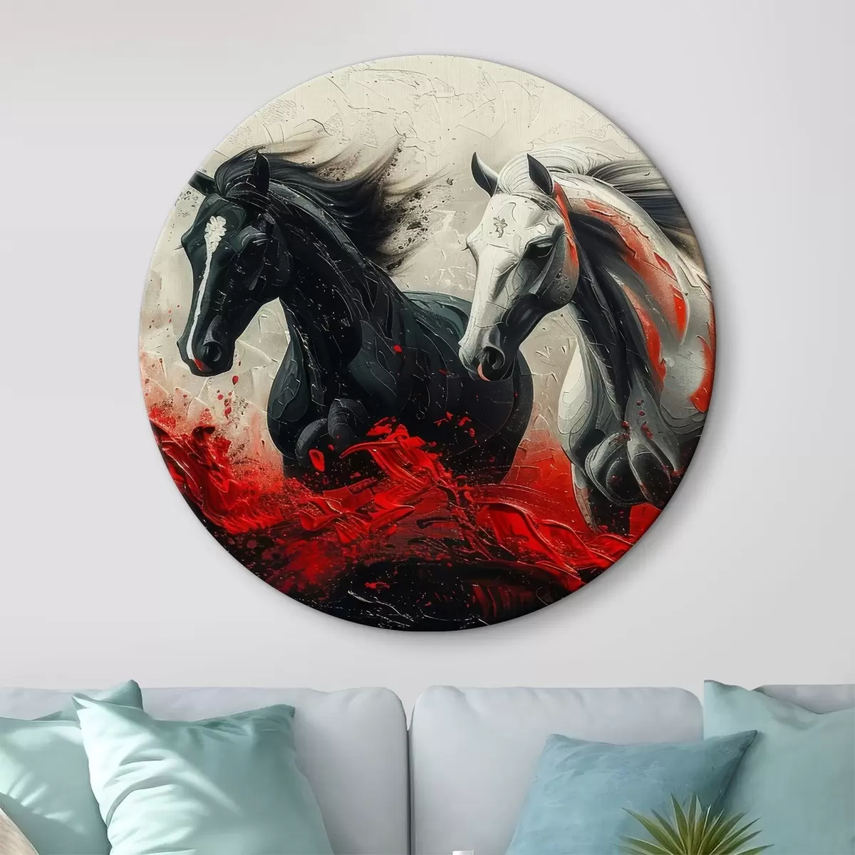 Runde Wandbilder Bild von laufenden Pferden mit roter Farbe r37769