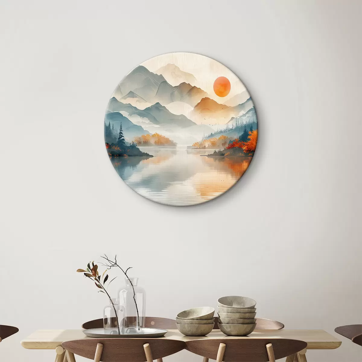 Runde Wandbilder Landschaft mit Bergen und Wasser Nr r37780