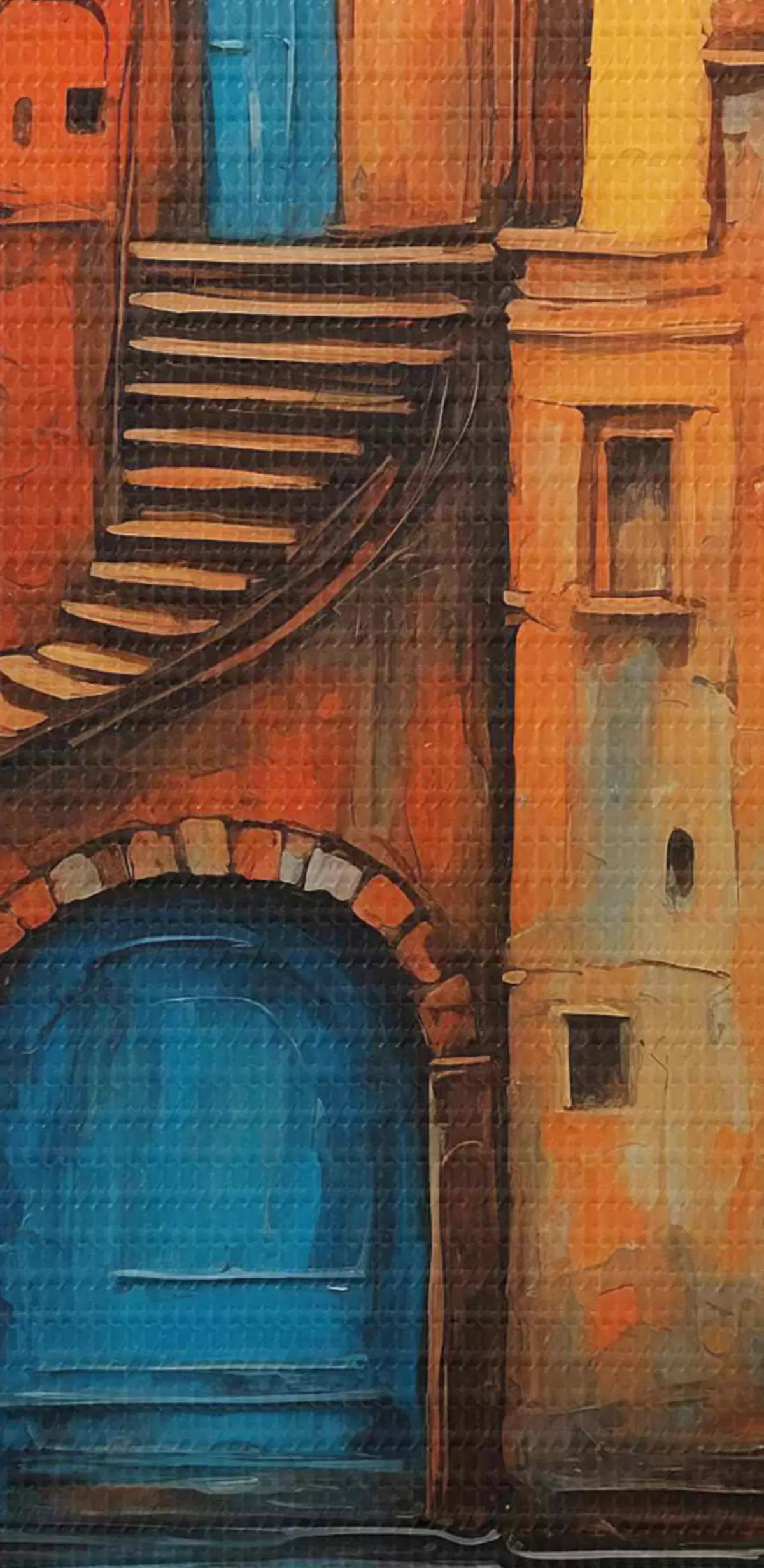 Runde Wandbilder Bild eines Gebäudes mit einer Treppe und blauen Türen r37789