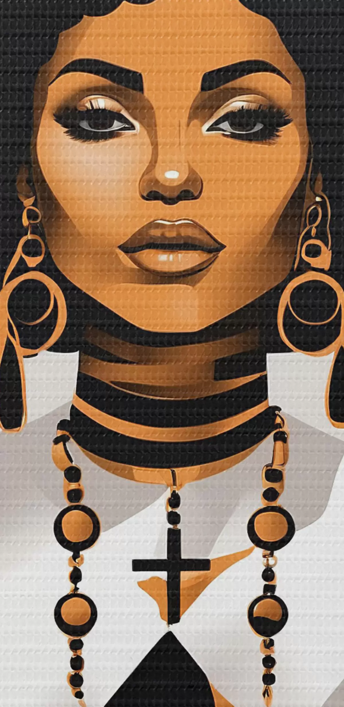 Runde Wandbilder Eine Frau mit großem Afro, weißem Hemd und Ohrringen Nr r37793