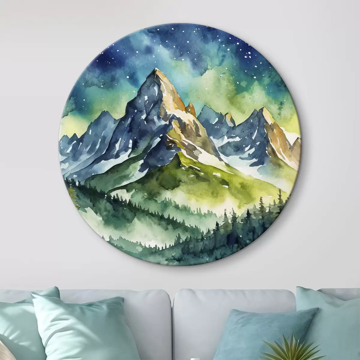Runde Wandbilder Majestätische Berge unter dem Sternenhimmel Nr r37944