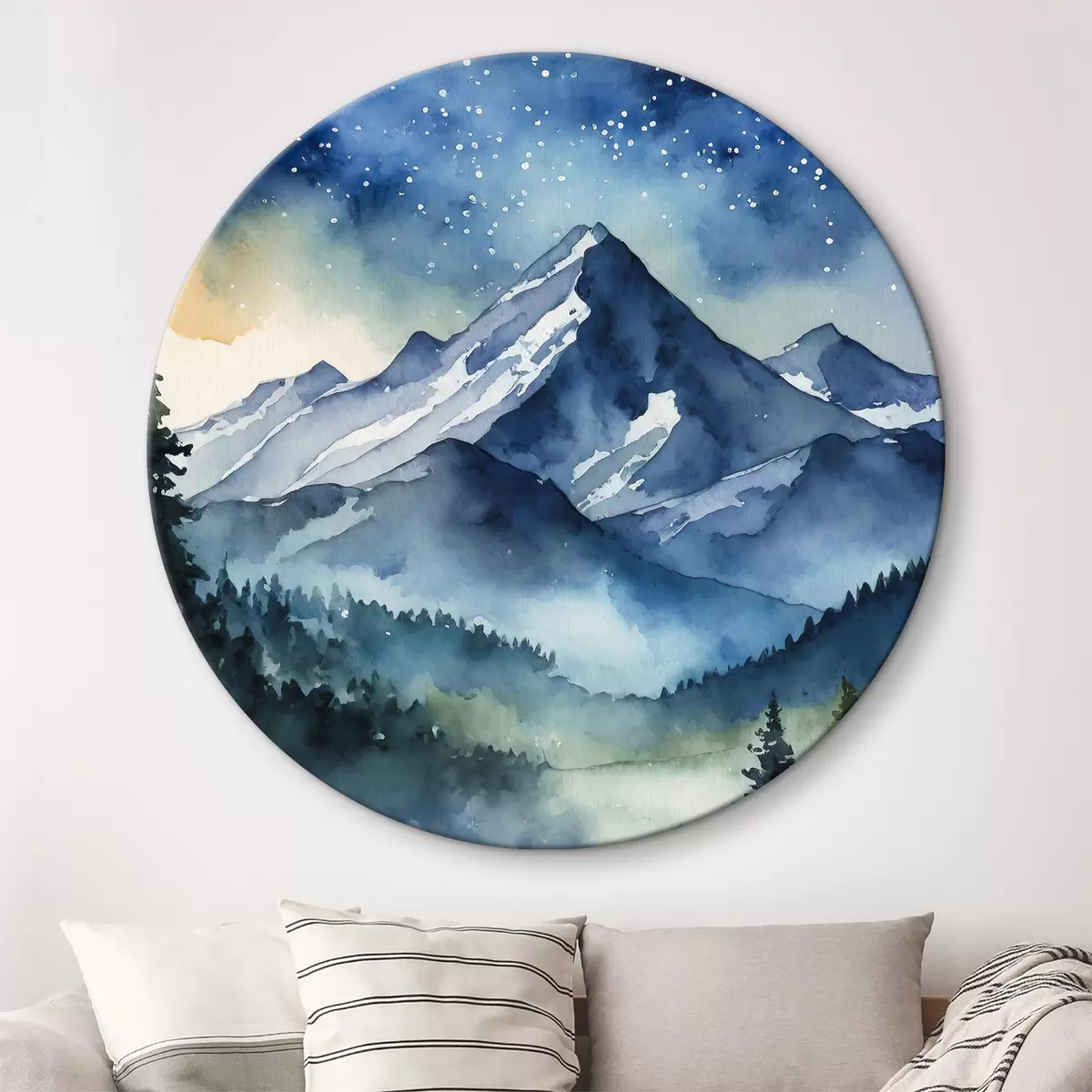 Runde Wandbilder Majestätische Berge unter dem Sternenhimmel Nr r37945