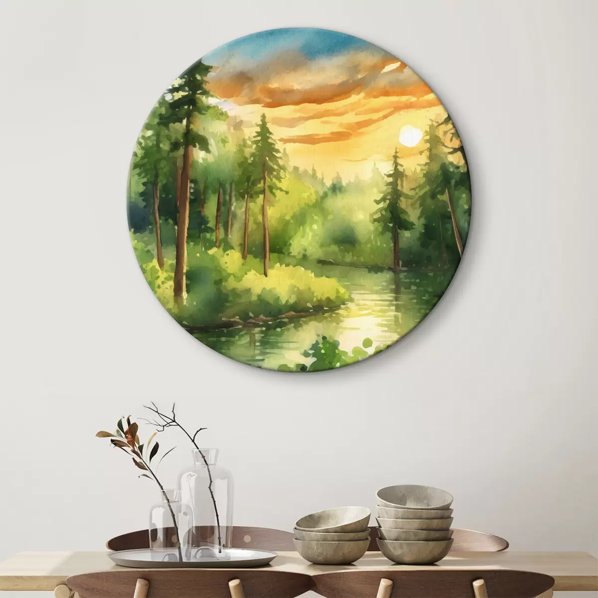 Runde Wandbilder Friedlicher Wald in der Nähe eines ruhigen Flusses Nr r37950