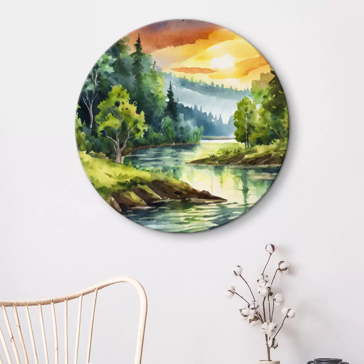 Runde Wandbilder Ruhige Gewässer unter einem bunten Himmel Nr r37951