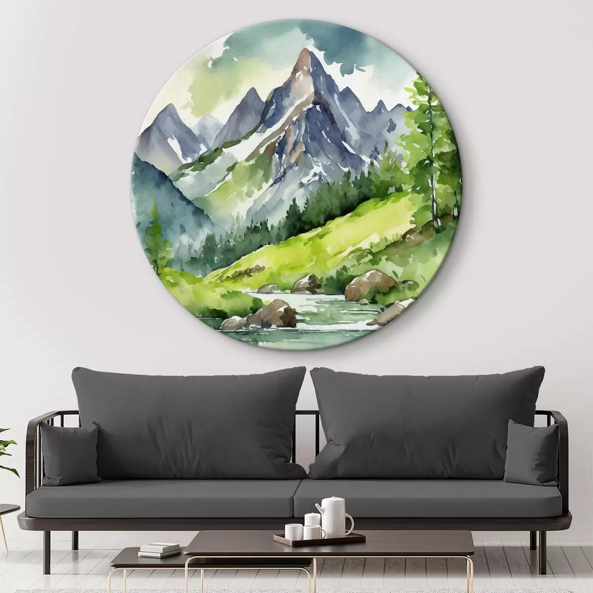 Runde Wandbilder Majestätische Berge unter einem sanften Himmel Nr r37958