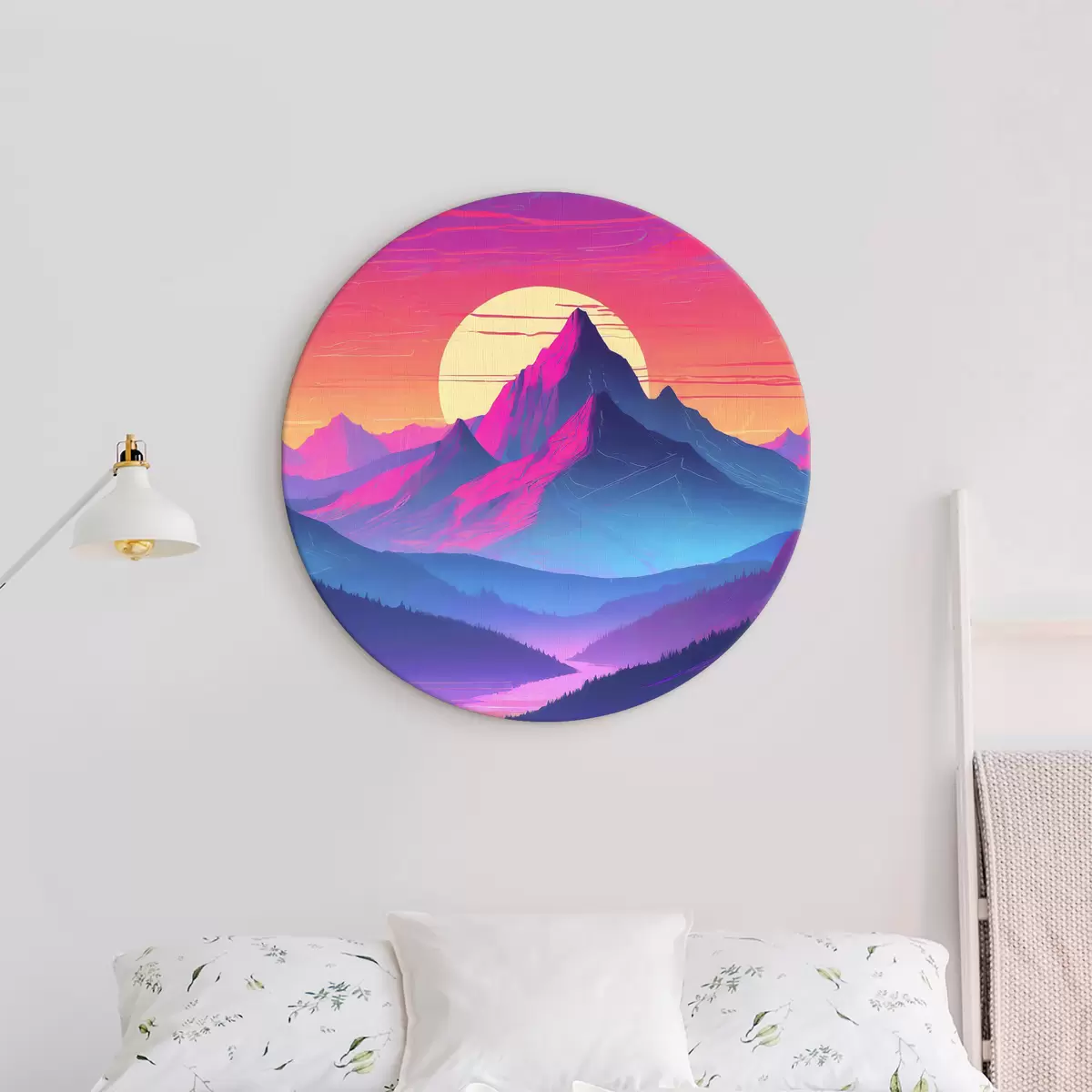 Runde Wandbilder Friedliche Berge unter einem bunten Himmel Nr r38003