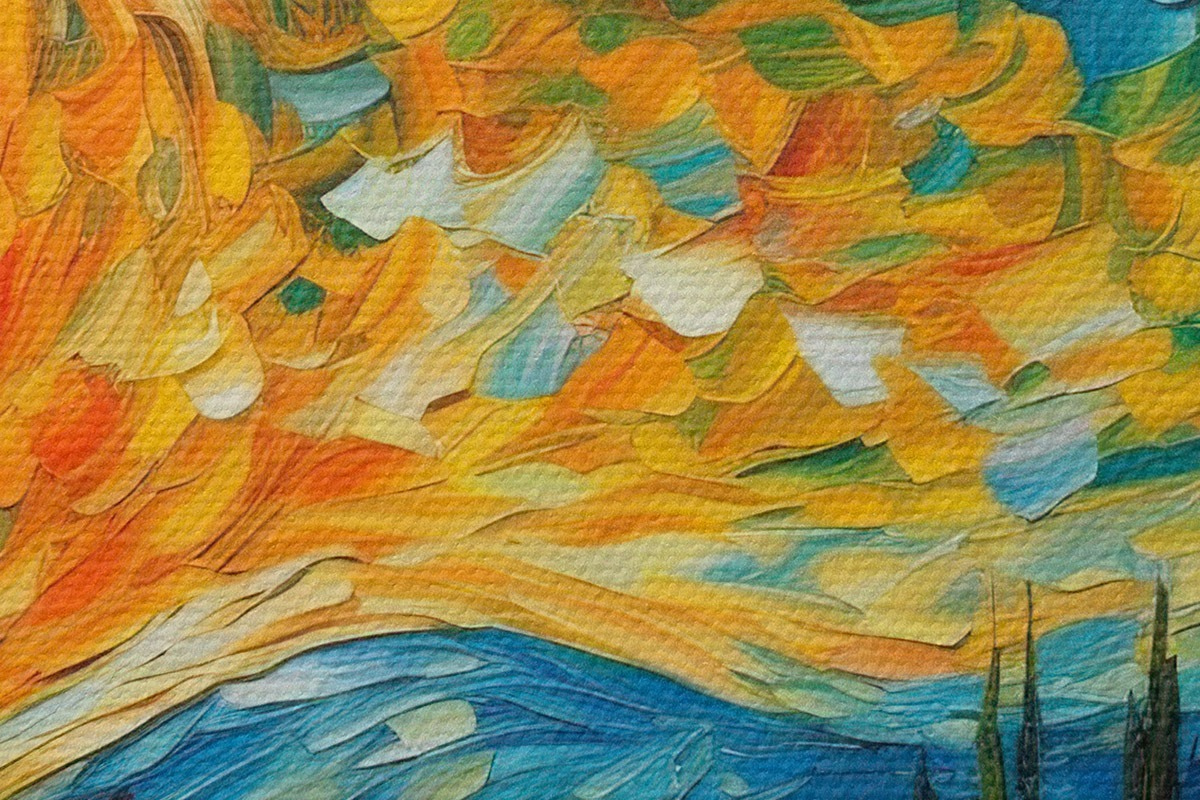 Durch die Lackierung entsteht eine zusätzliche Schutzschicht auf der Leinwand. Das Bild wird dadurch widerstandsfähiger gegen kleinere Schäden. Um das lackierte Bild aufzufrischen, können Sie es mit einem weichen, leicht feuchten Tuch abwischen.