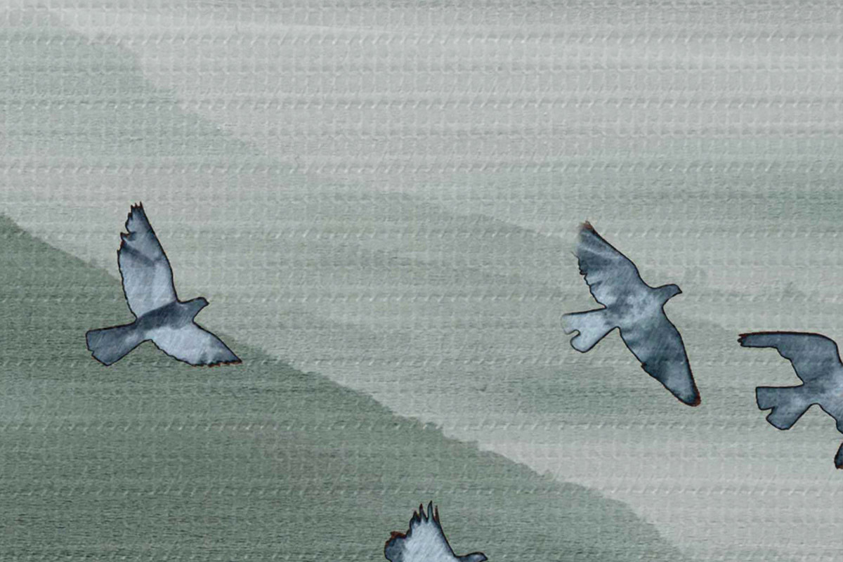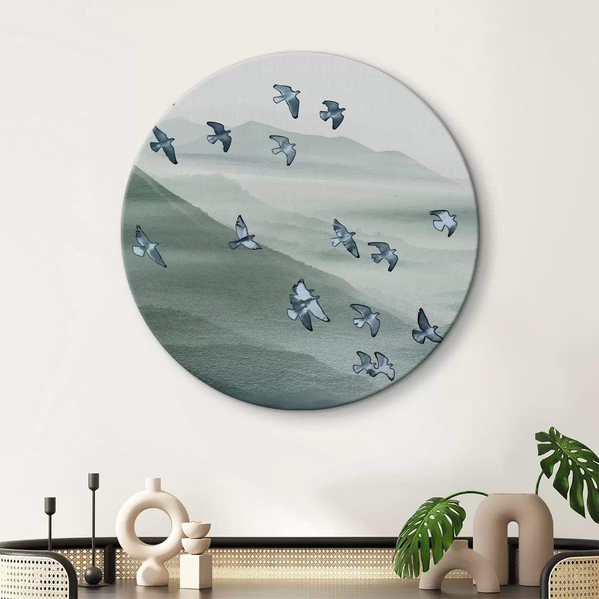 Runde Wandbilder Ein Vogelschwarm fliegt über die Berge Nr r38069