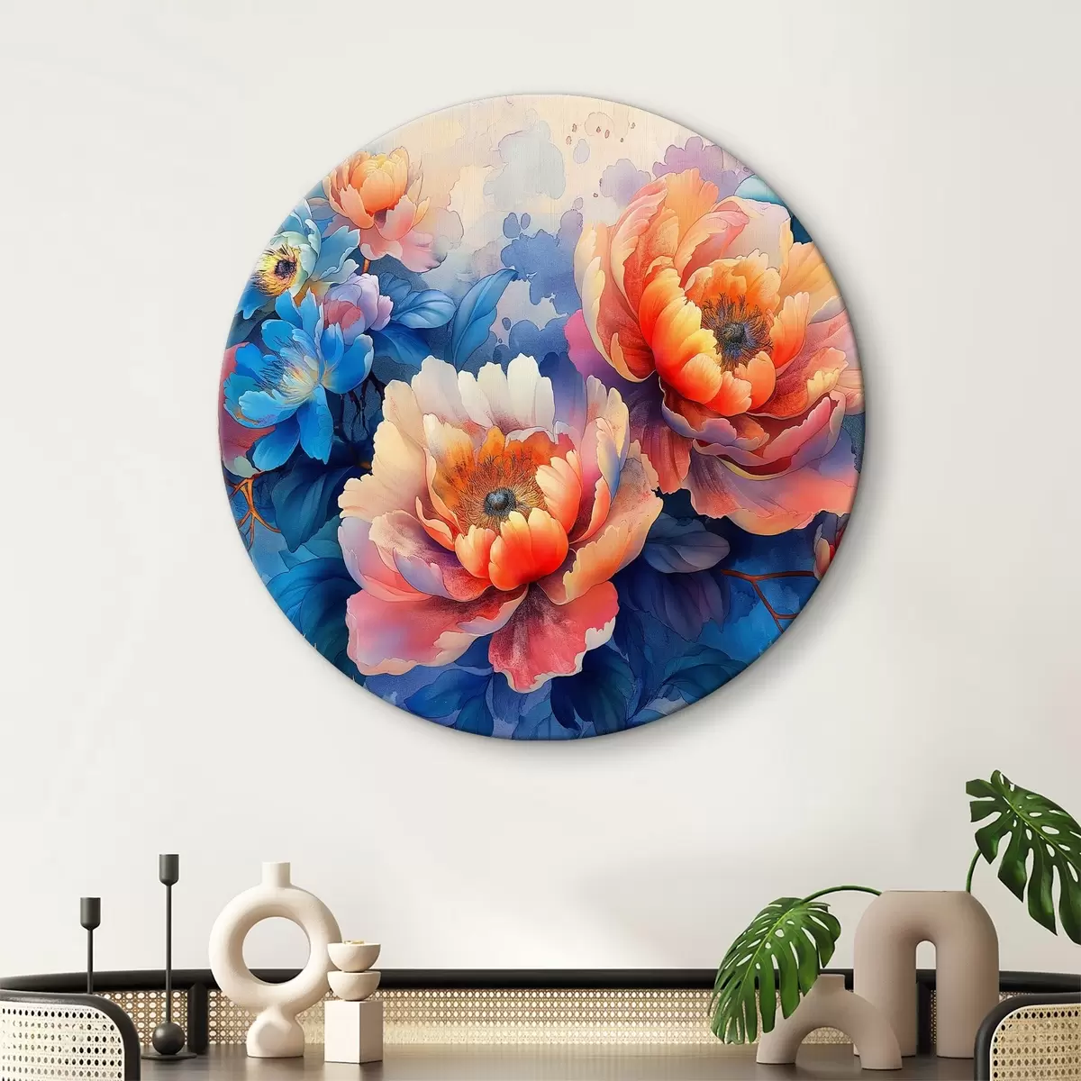 Runde Wandbilder Bild von Blumen auf einem blauen Hintergrund r38088
