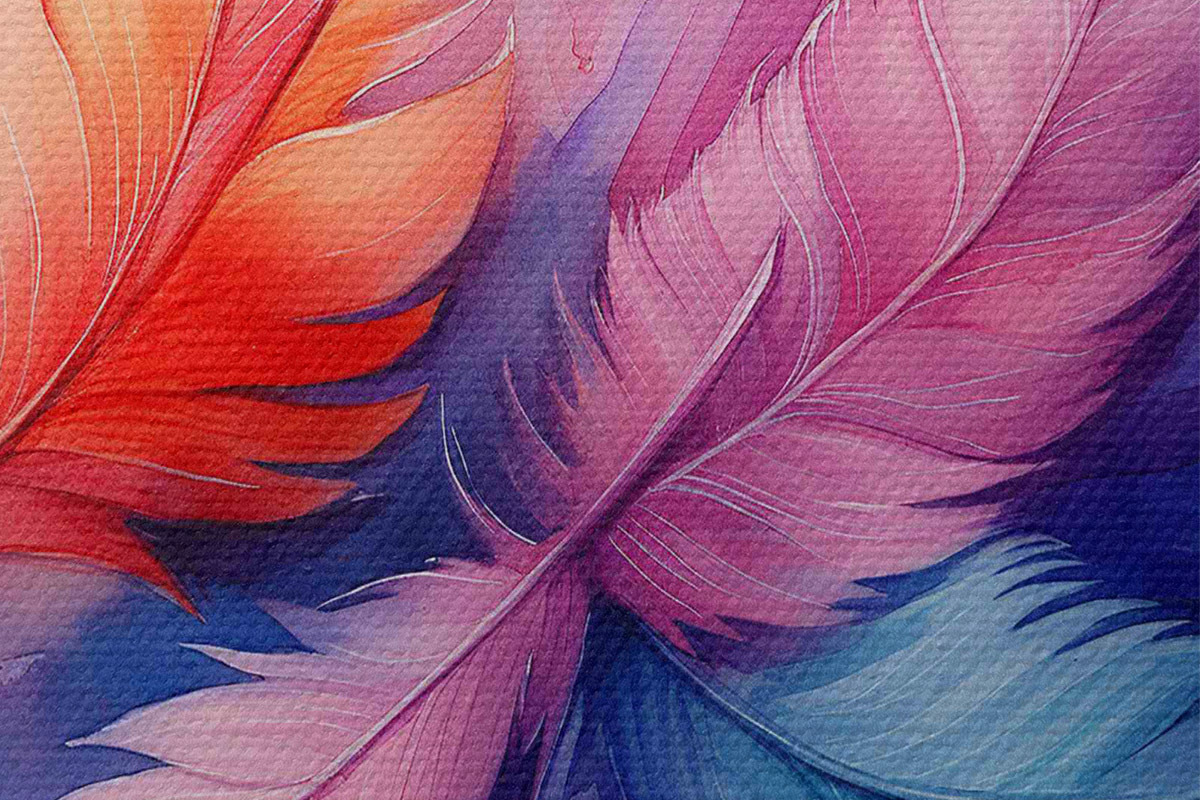 Runde Wandbilder Bunte Federn auf einem weißen Hintergrund r38093